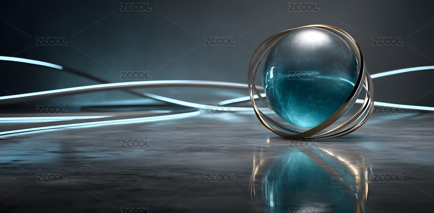 银色汽车金色飘带波光粼粼黑色背景三维图
