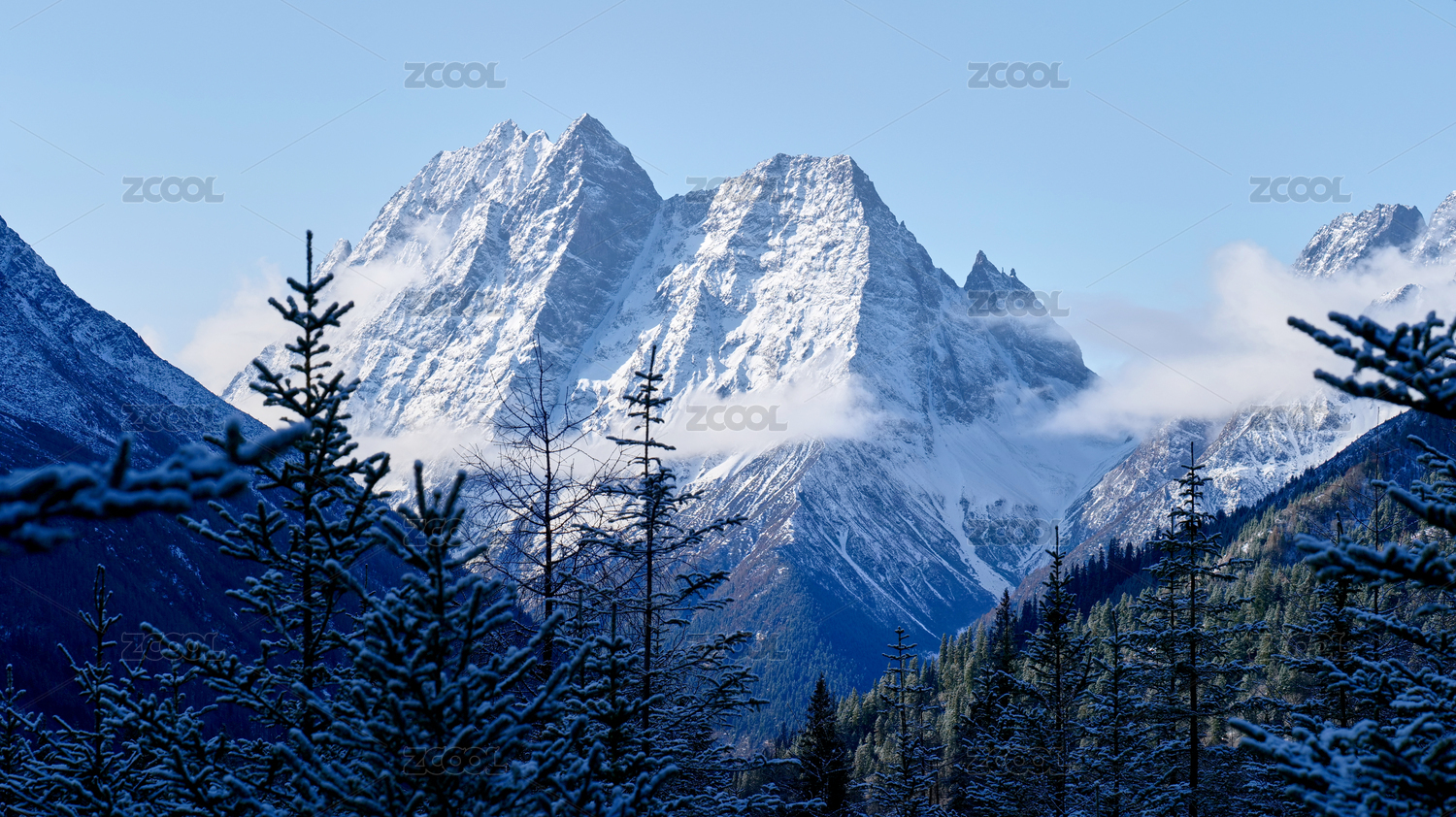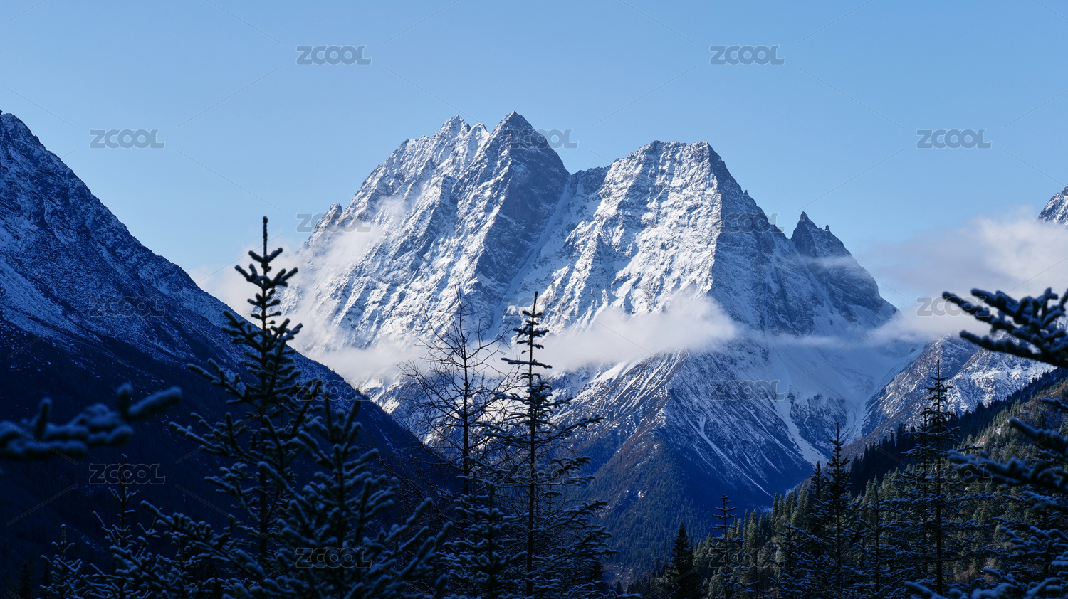 四川阿坝四姑娘山双桥沟冬季雪山风光