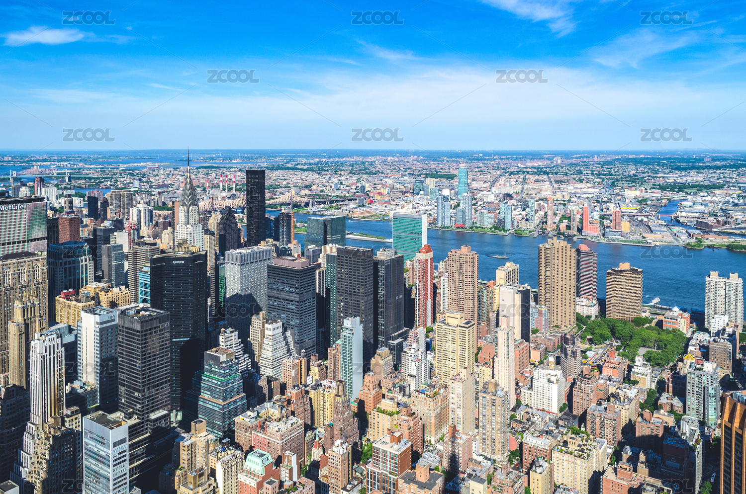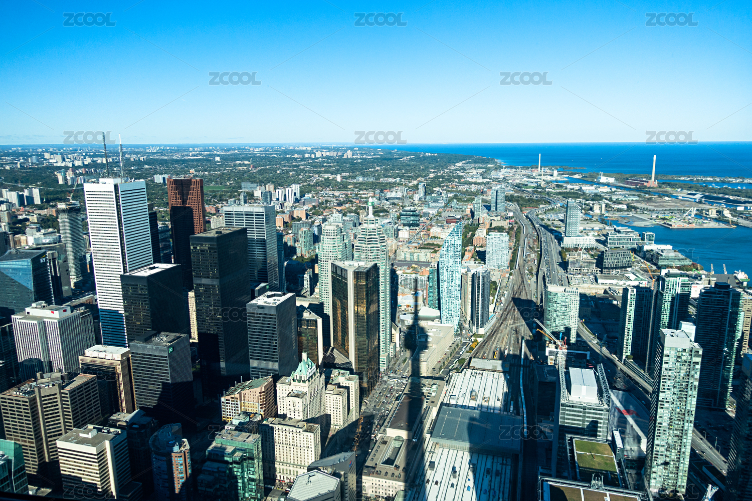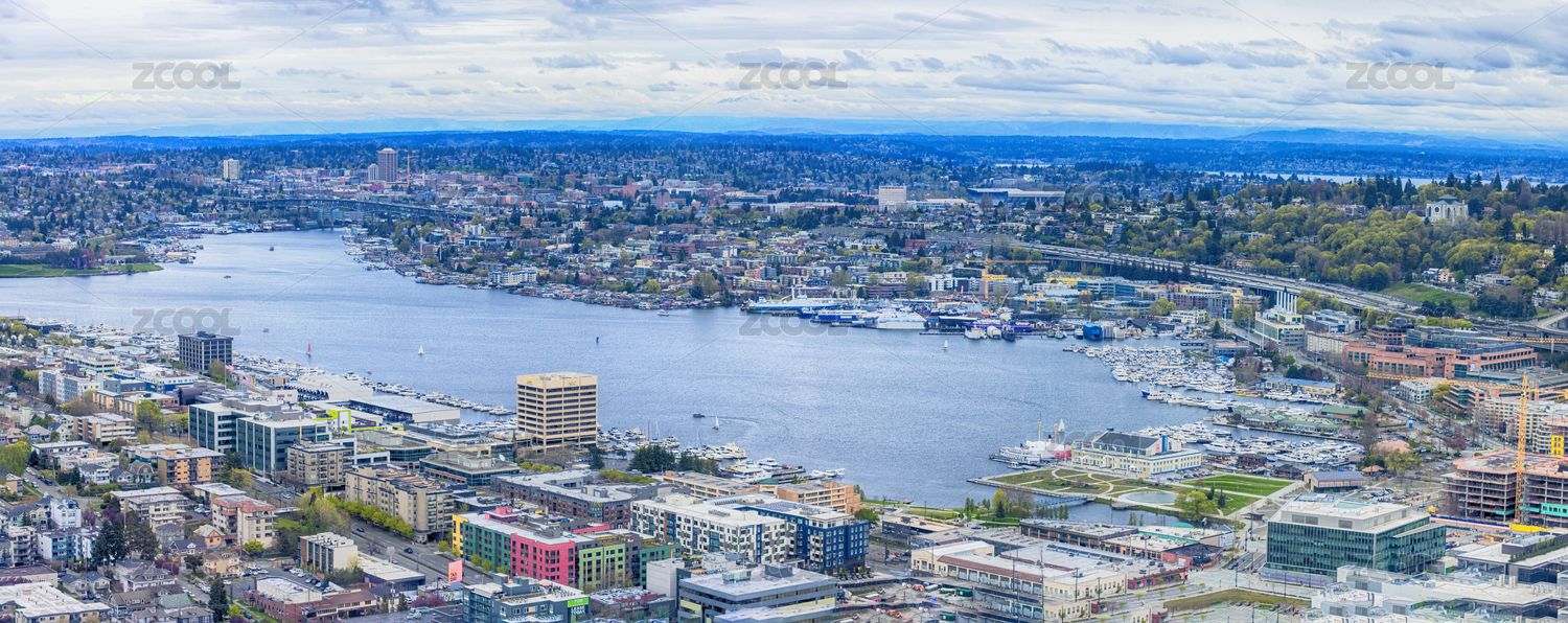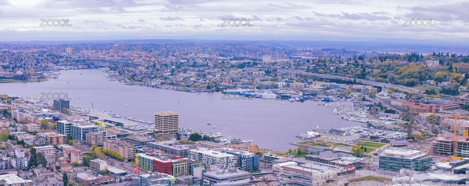 高视角,俯瞰,美国,华盛顿州,西雅图,城市,建筑,蓝天,晴天,蓝色
