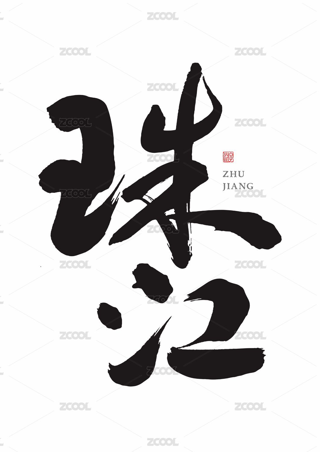 中文毛笔书法行书字形-珠江