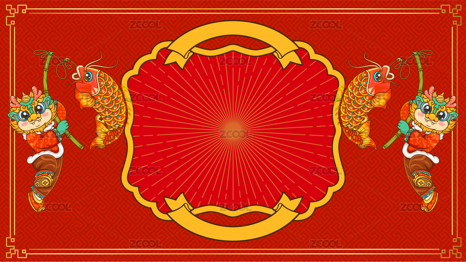 亚洲中国龙年矢量吉祥如意拜年红色背景边框