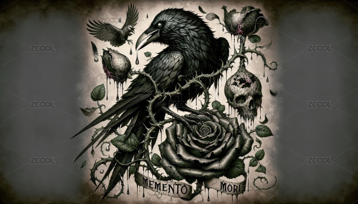 乌鸦,头骨,复古,暗黑,美式,骷髅,站姿,翅膀,飞翔,十字架