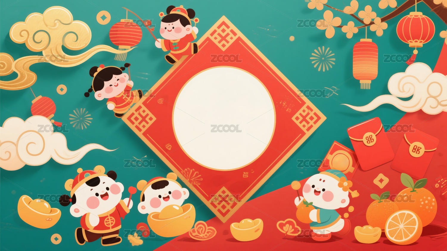 新年2020年鼠年春节,瑞鼠迎春海报插画背景