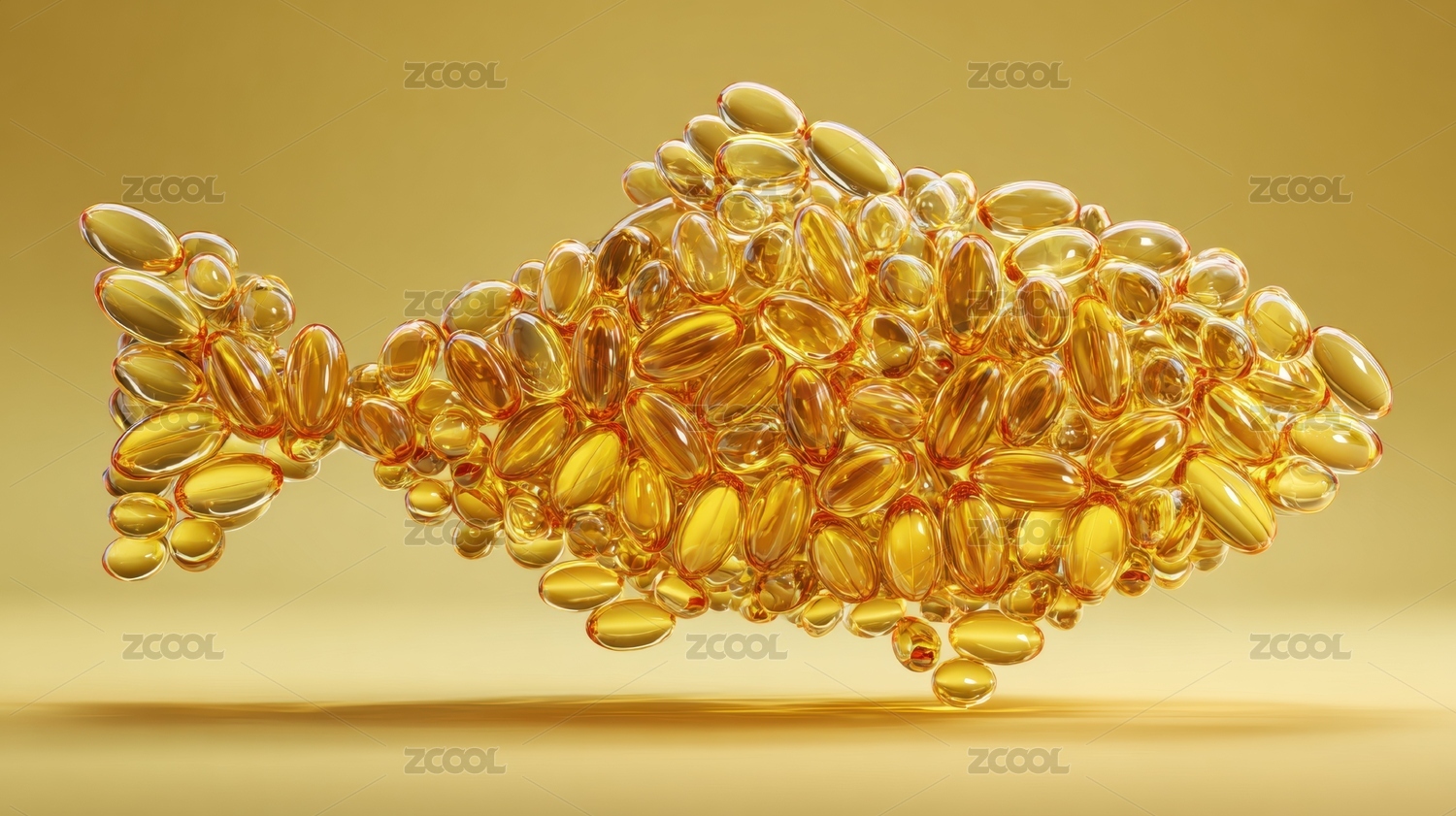金黄色的欧米茄鱼油软胶囊,营养医疗健康类产品