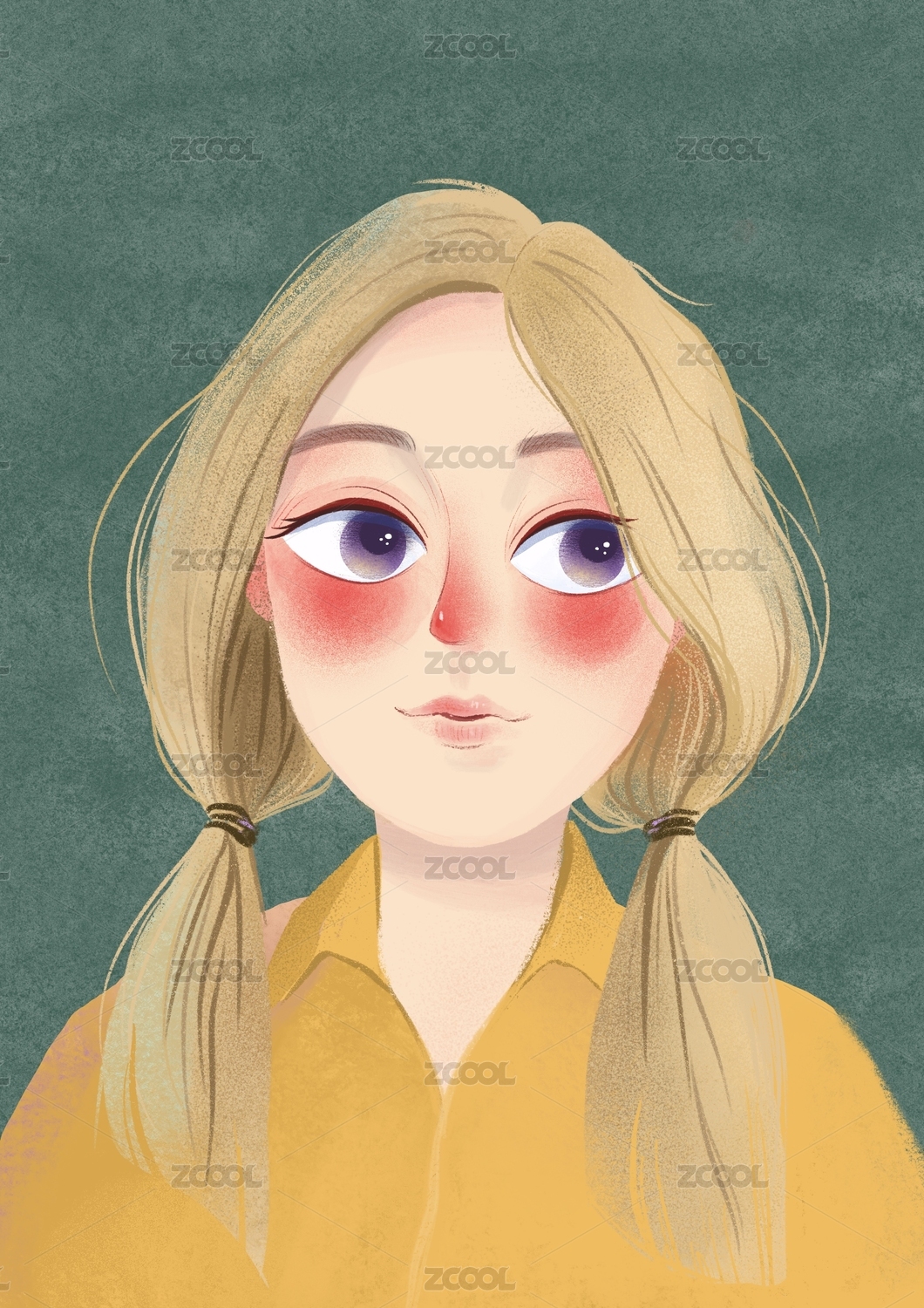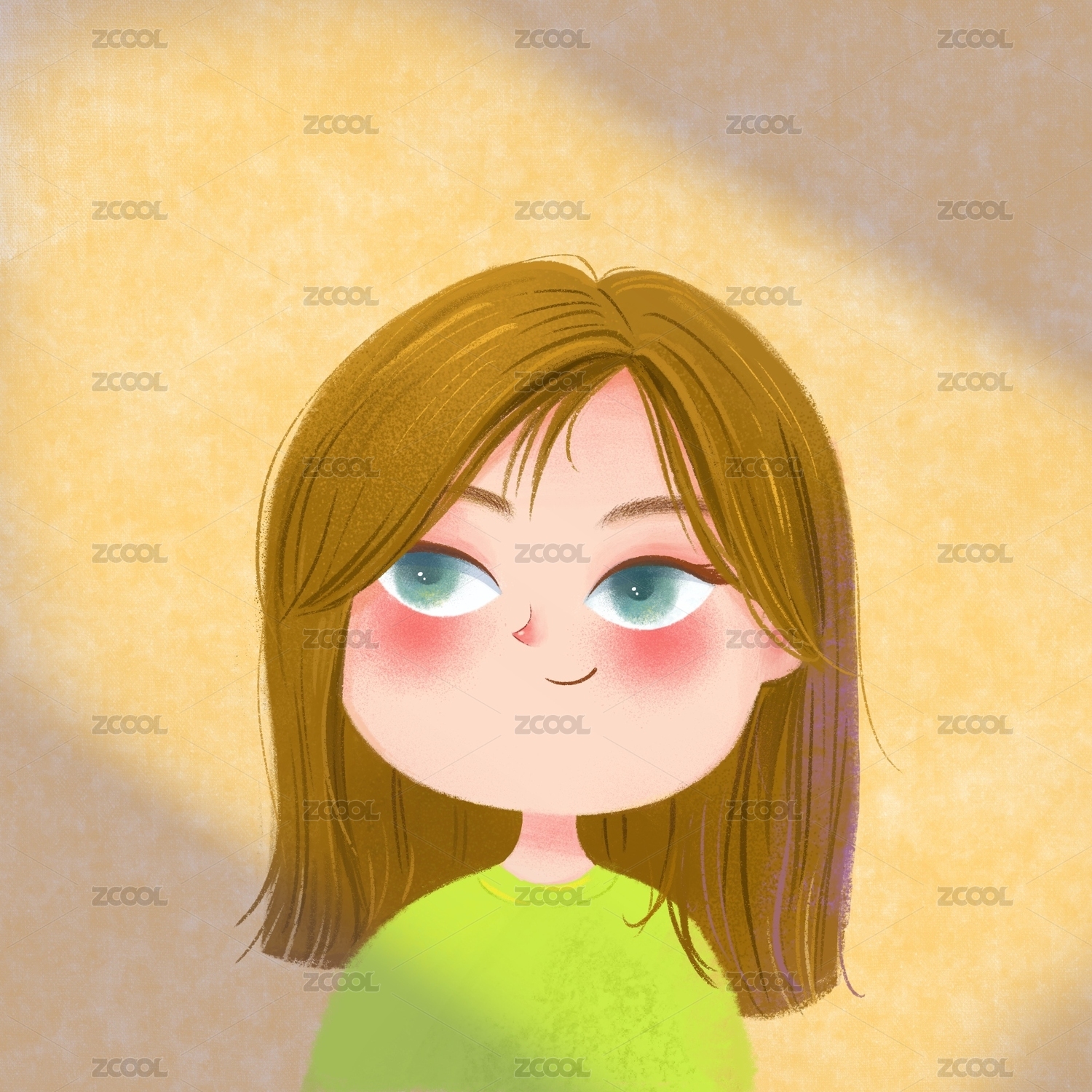 咖啡色,小清新,情侣头像,可爱,绿眼睛,黄背景,绿衣服,薄荷绿,萌,小女孩