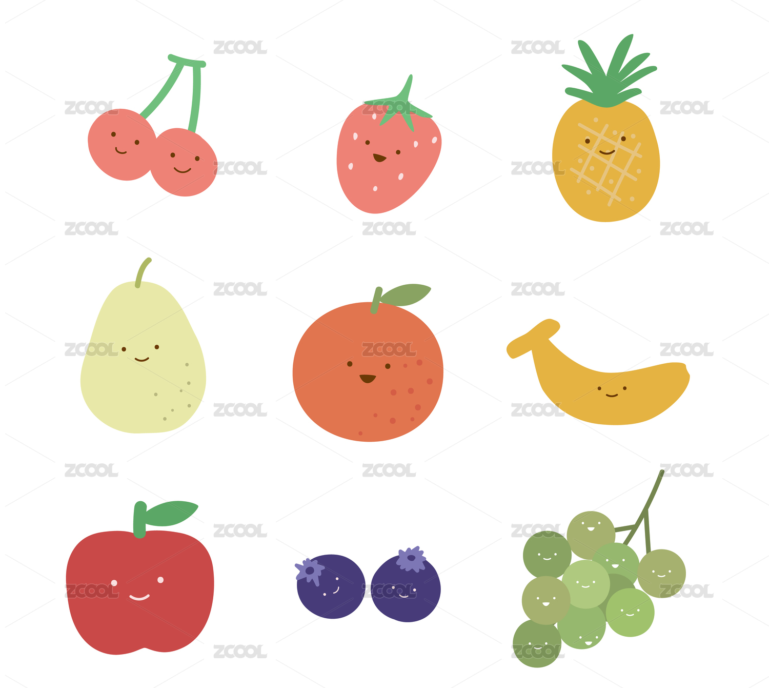卡通水果柠檬莲雾菠萝蜜提子素材