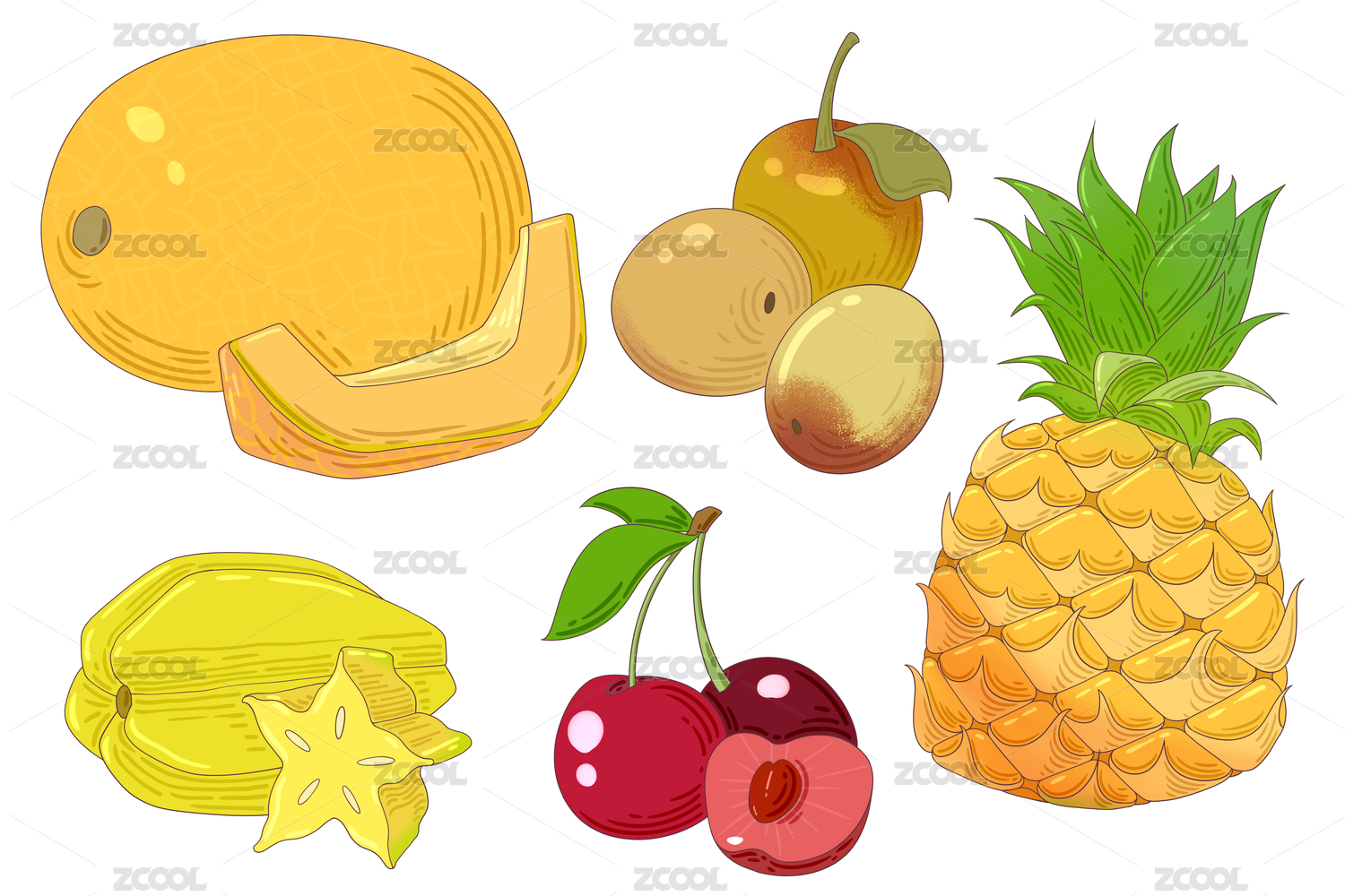 卡通水果释迦果白兰瓜黄桃枇杷素材