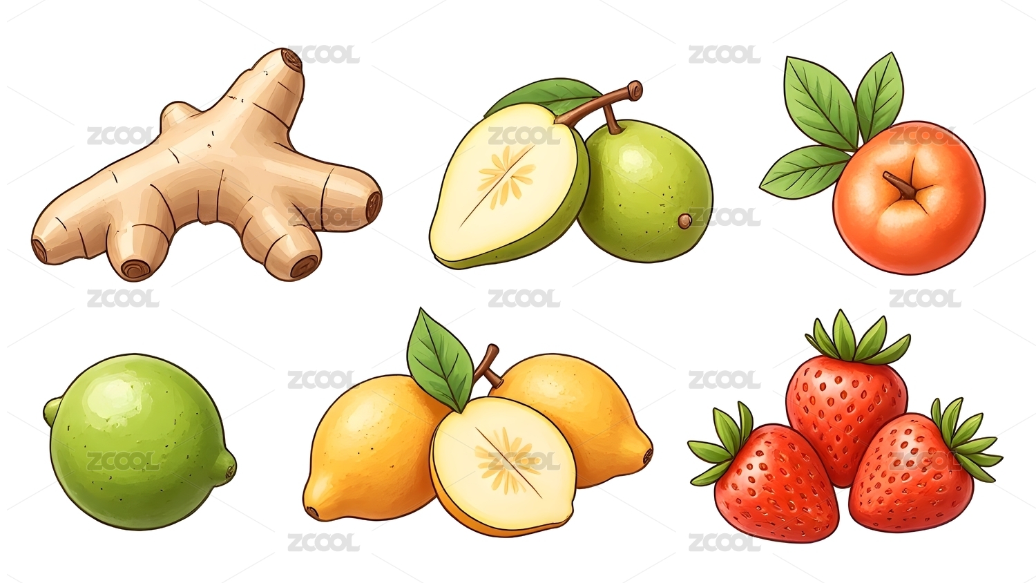 猕猴桃土豆番茄柠檬梨子西瓜插画合集