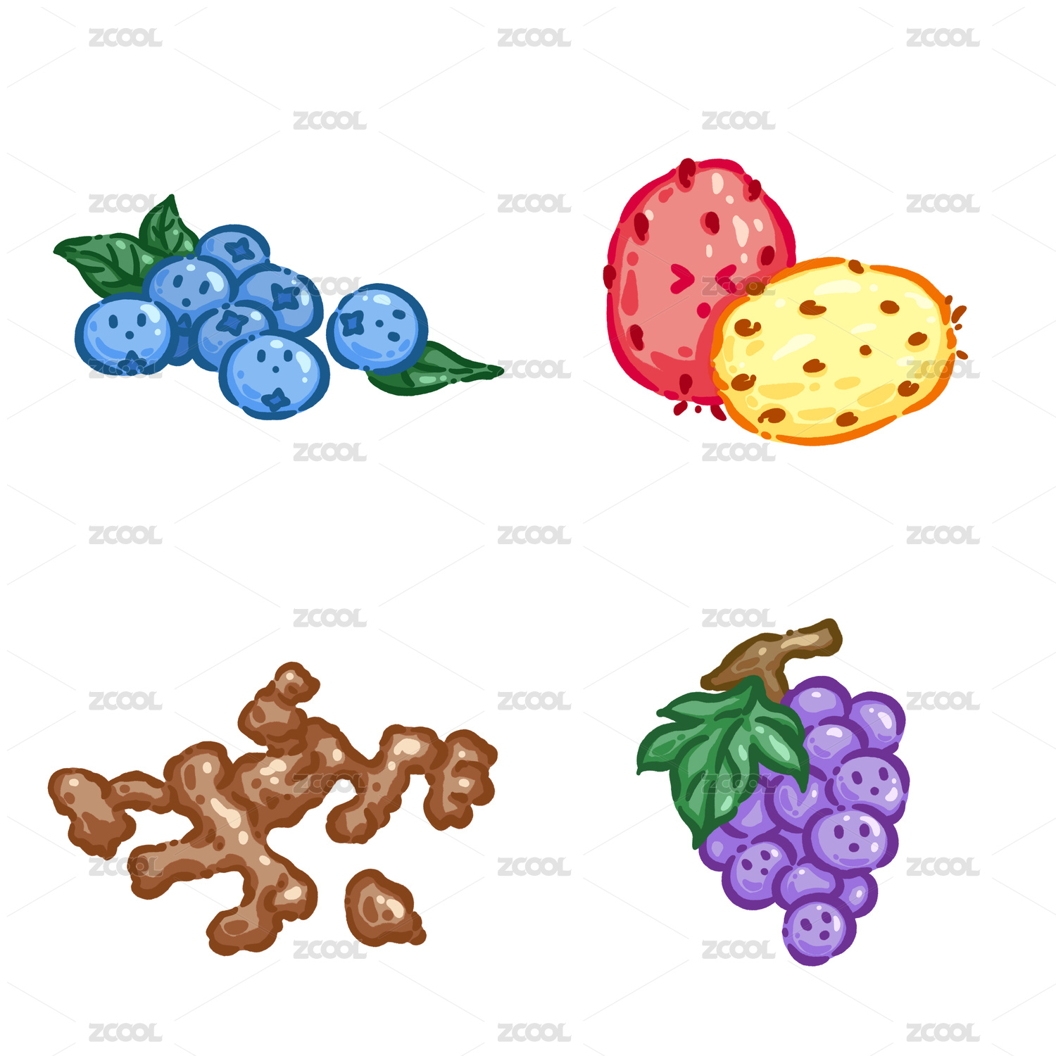 卡通水果蓝莓仙人掌果拐枣葡萄素材