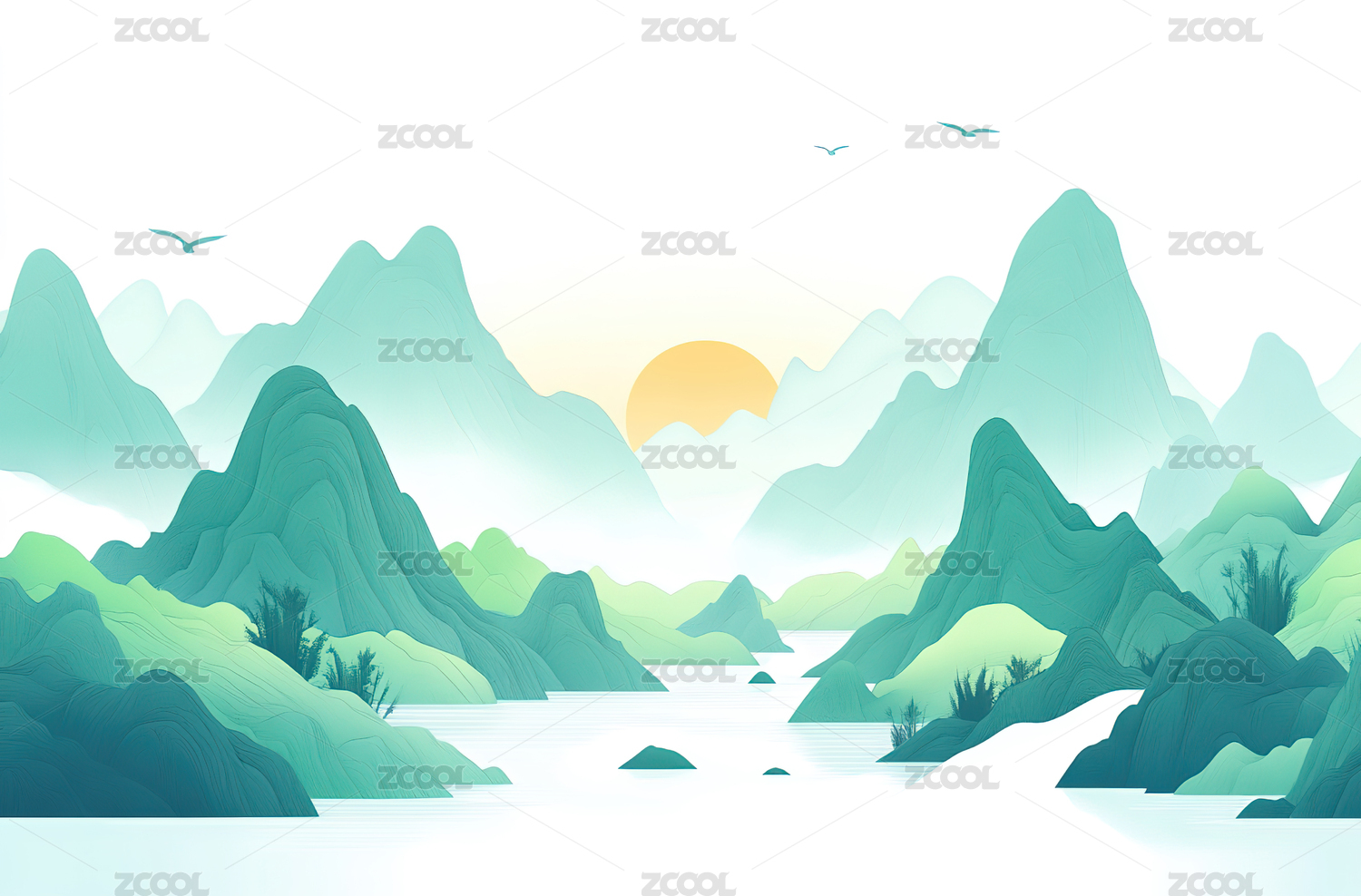 自然,元素,植物,中国文化,背景,地形,花瓣,高山,白色,AI数字艺术