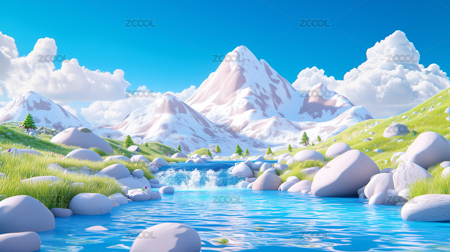3D卡通自然场景插画