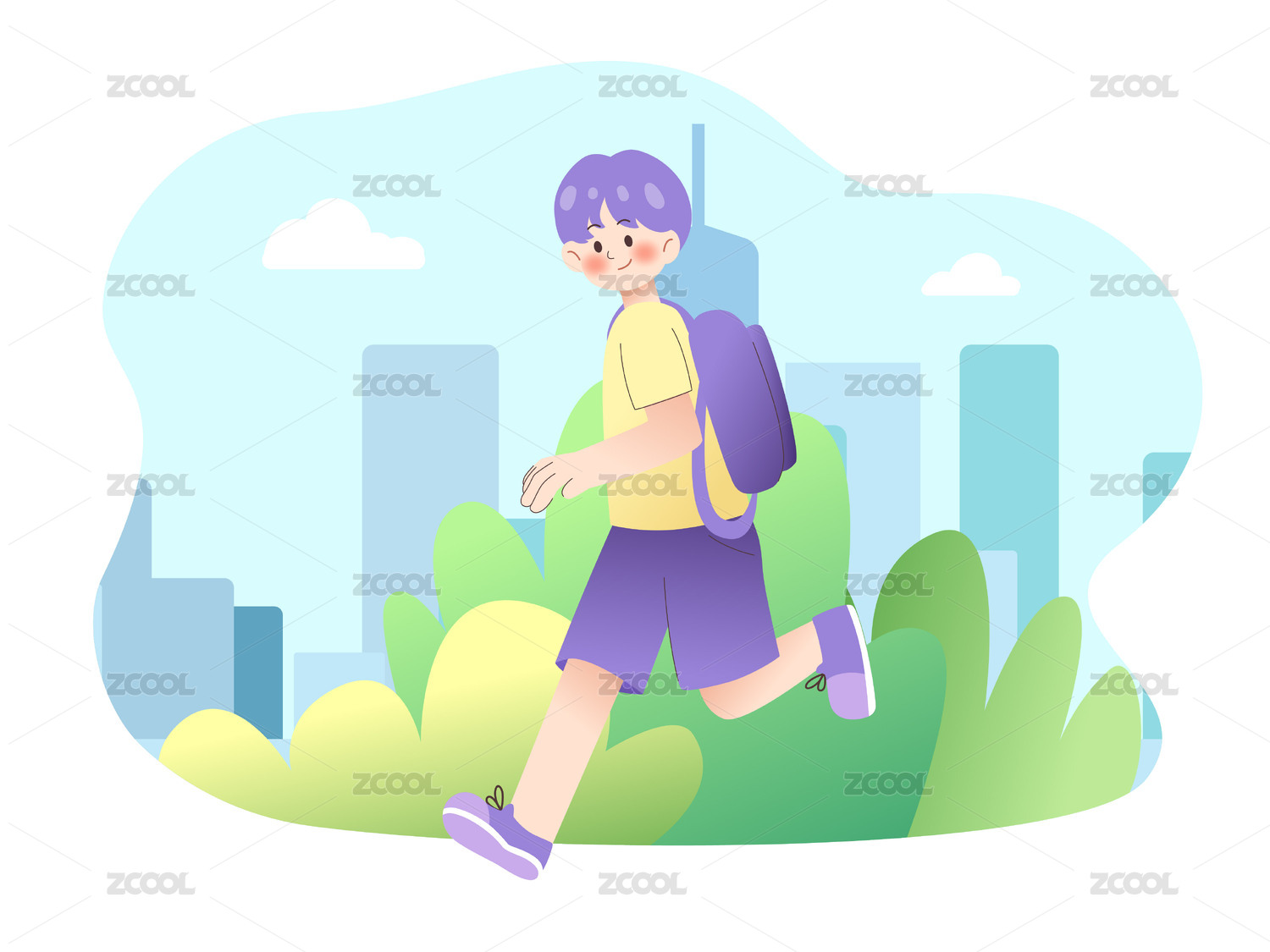 学生,校园,学校,教学楼,大树,开学季,开学,儿童,男生,插画