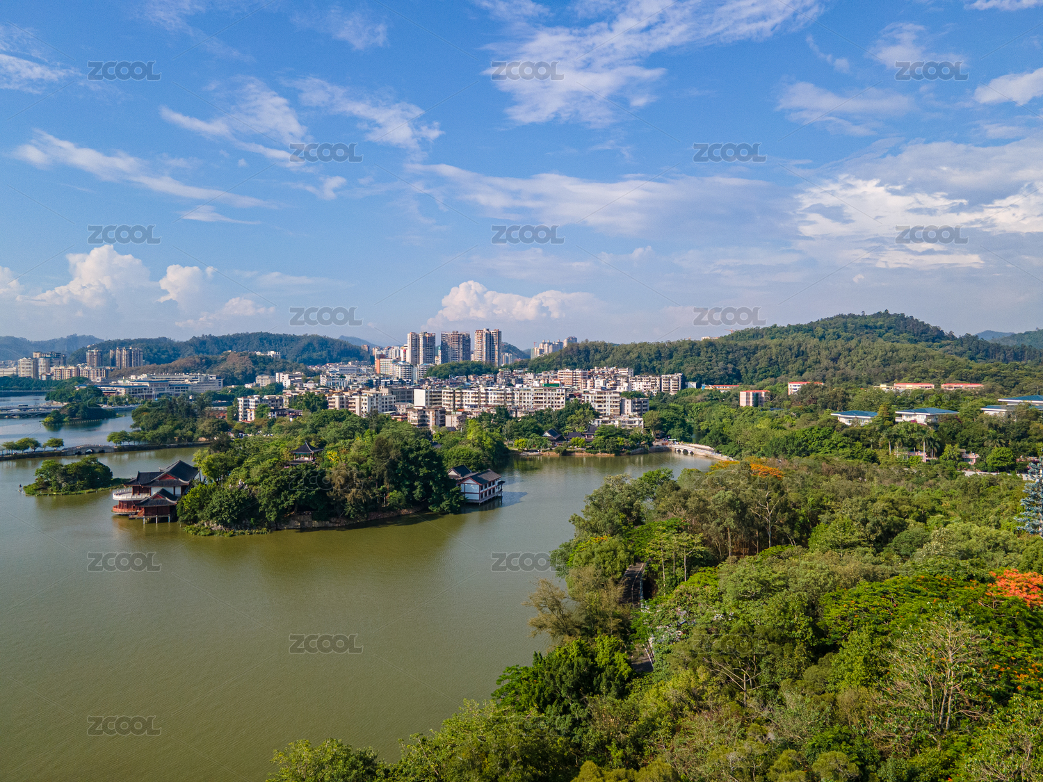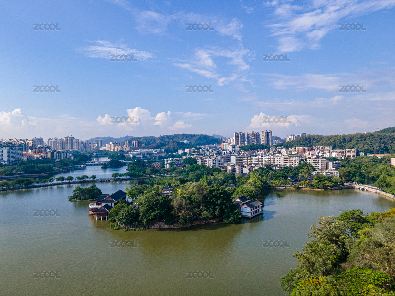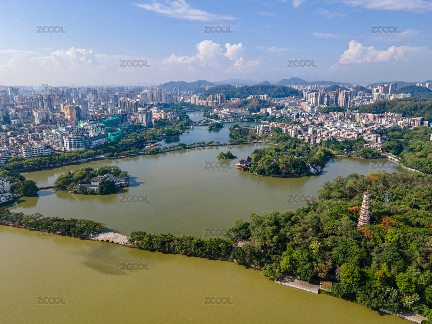 中国,广东省,惠州,惠城区,惠州西湖,人工湖,城市风光,九曲桥,泗州塔,自然风光
