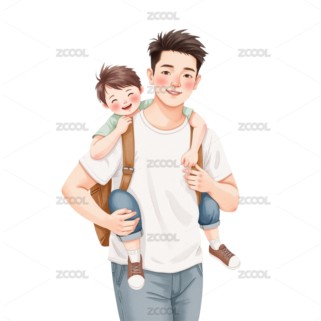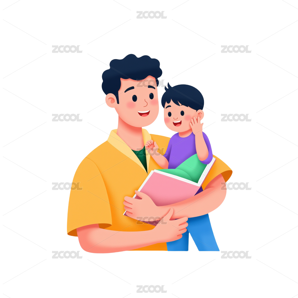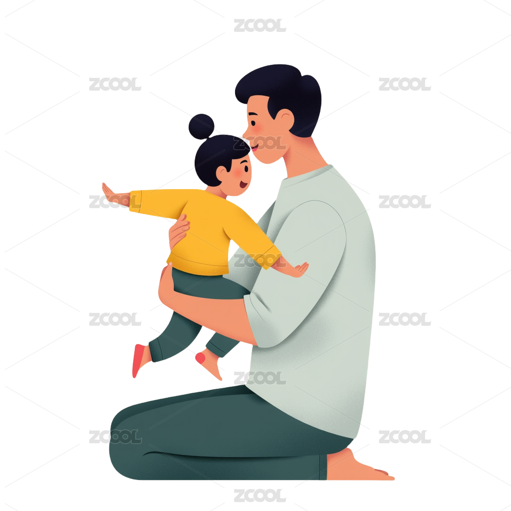 卡通儿童节父亲节亲子互动玩乐爸爸父爱插画