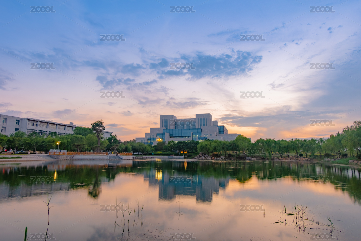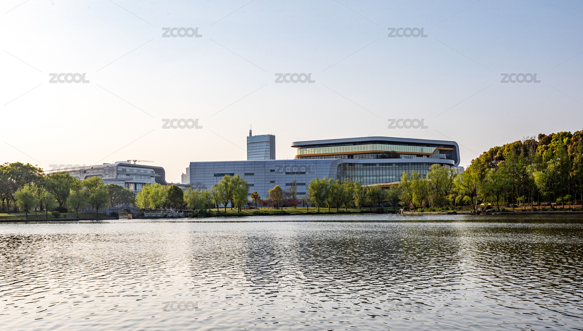 湖畔现代校园建筑群大学与湖泊