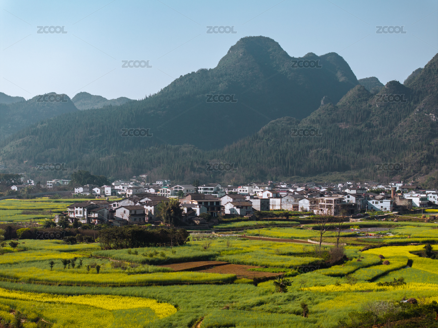 贵州,黔西南州,万峰林,油菜花,田园风光,自然风光,春天,村庄,山峰,户外