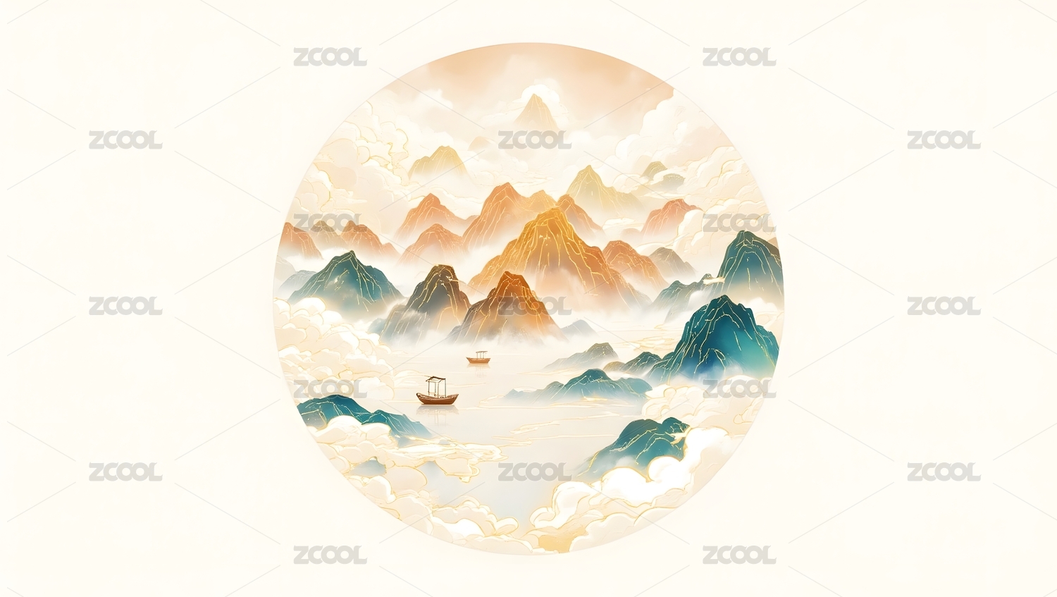 中国古风水墨微观山水场景草木丛生繁花盛开