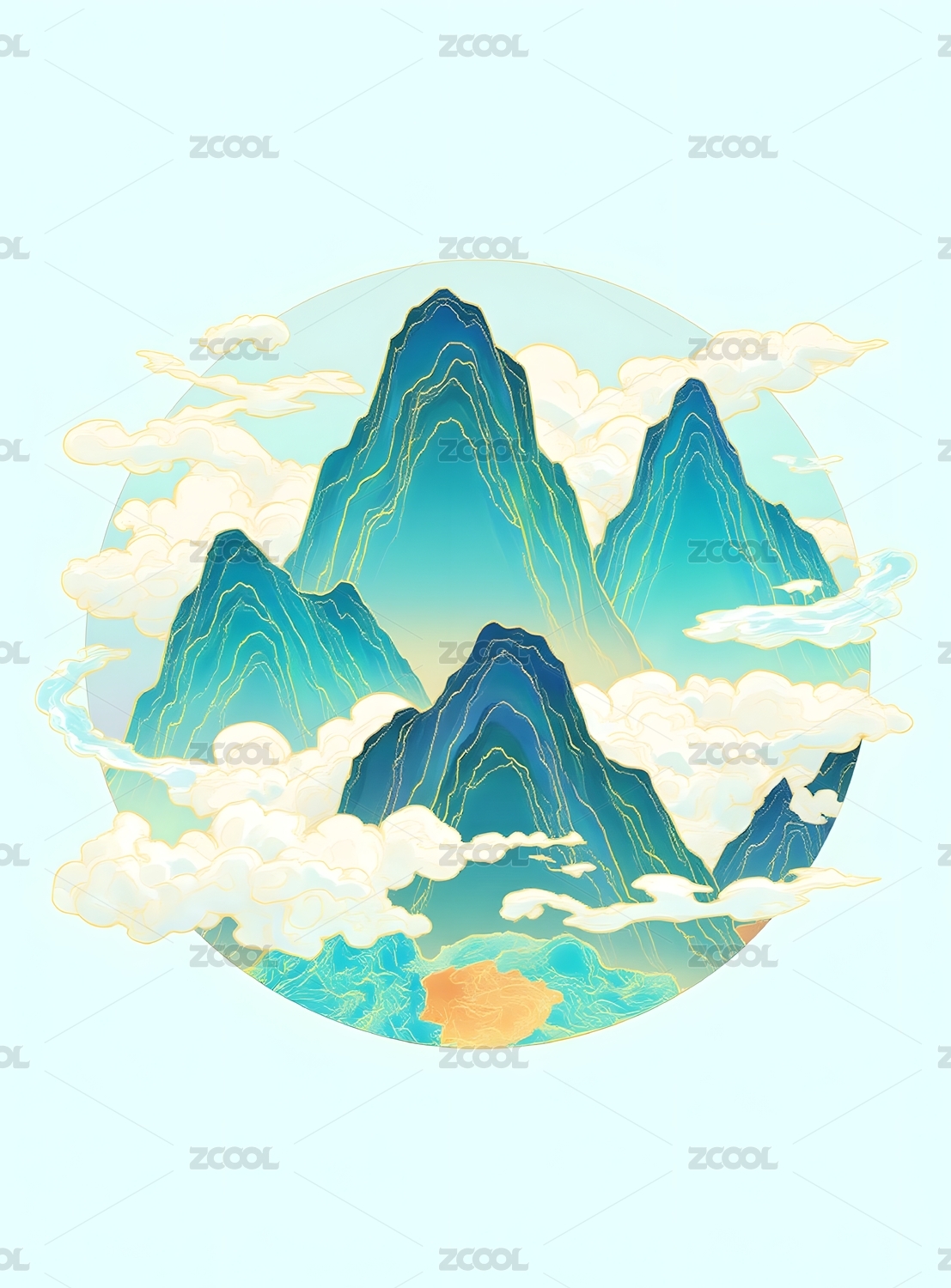 蓝色小雪国潮风小雪花和风景结合石像佛雪