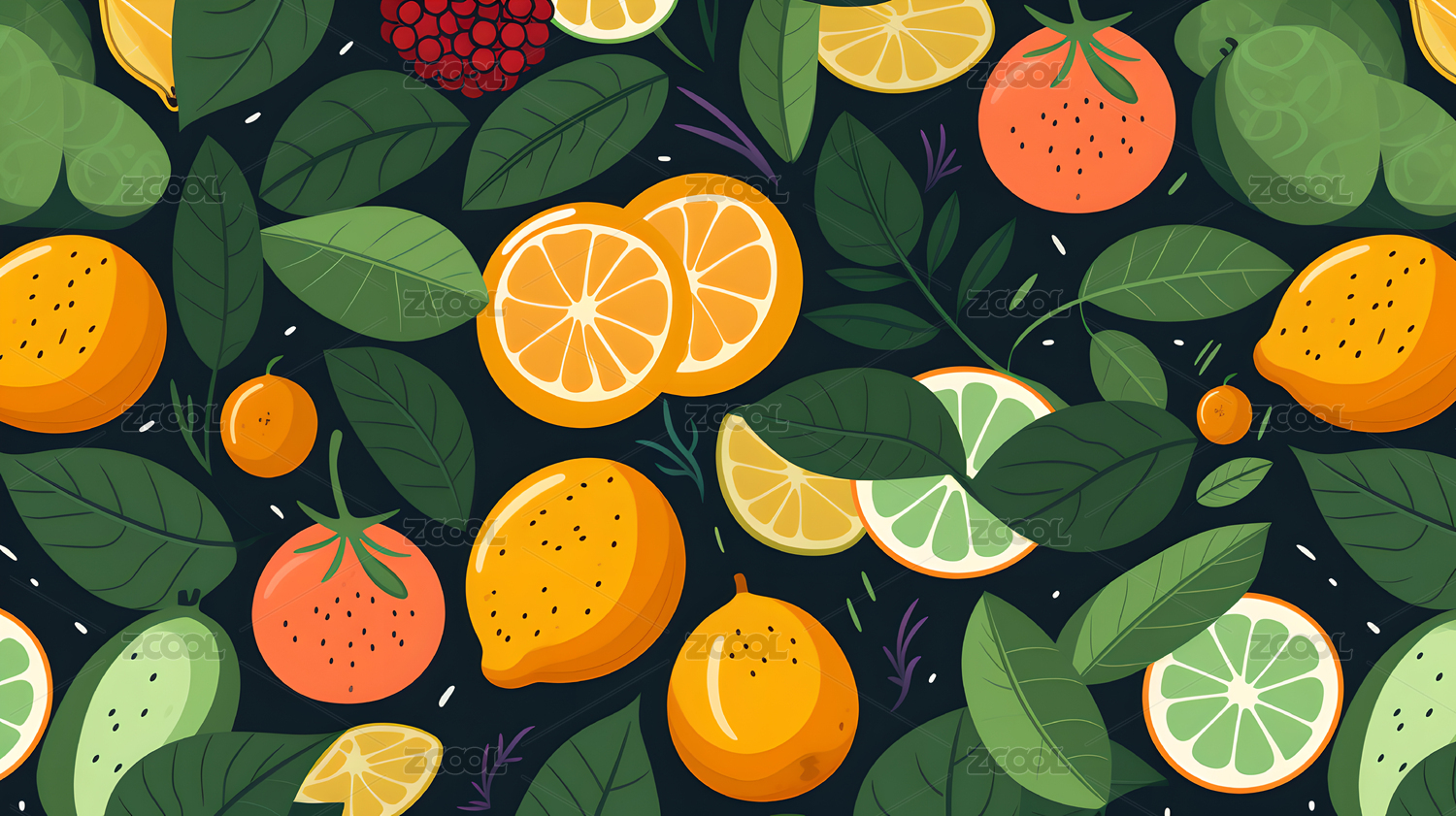 扁平风格装饰背景图柠檬片橘子清新壁纸图案