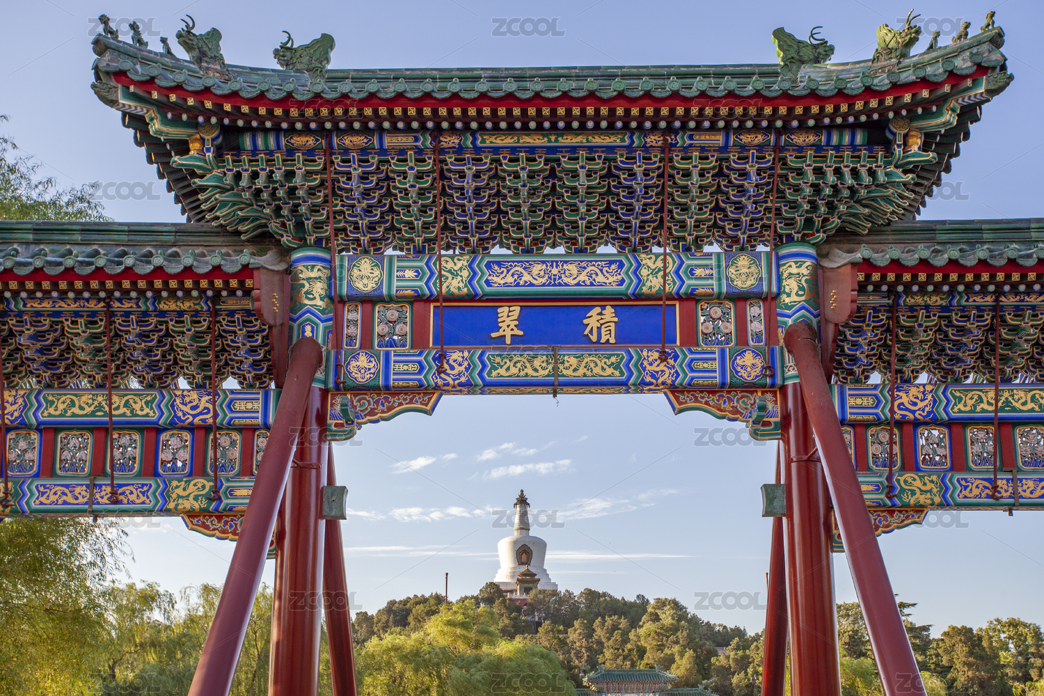 北京著名景点北海公园卯榫结构古建筑寺庙