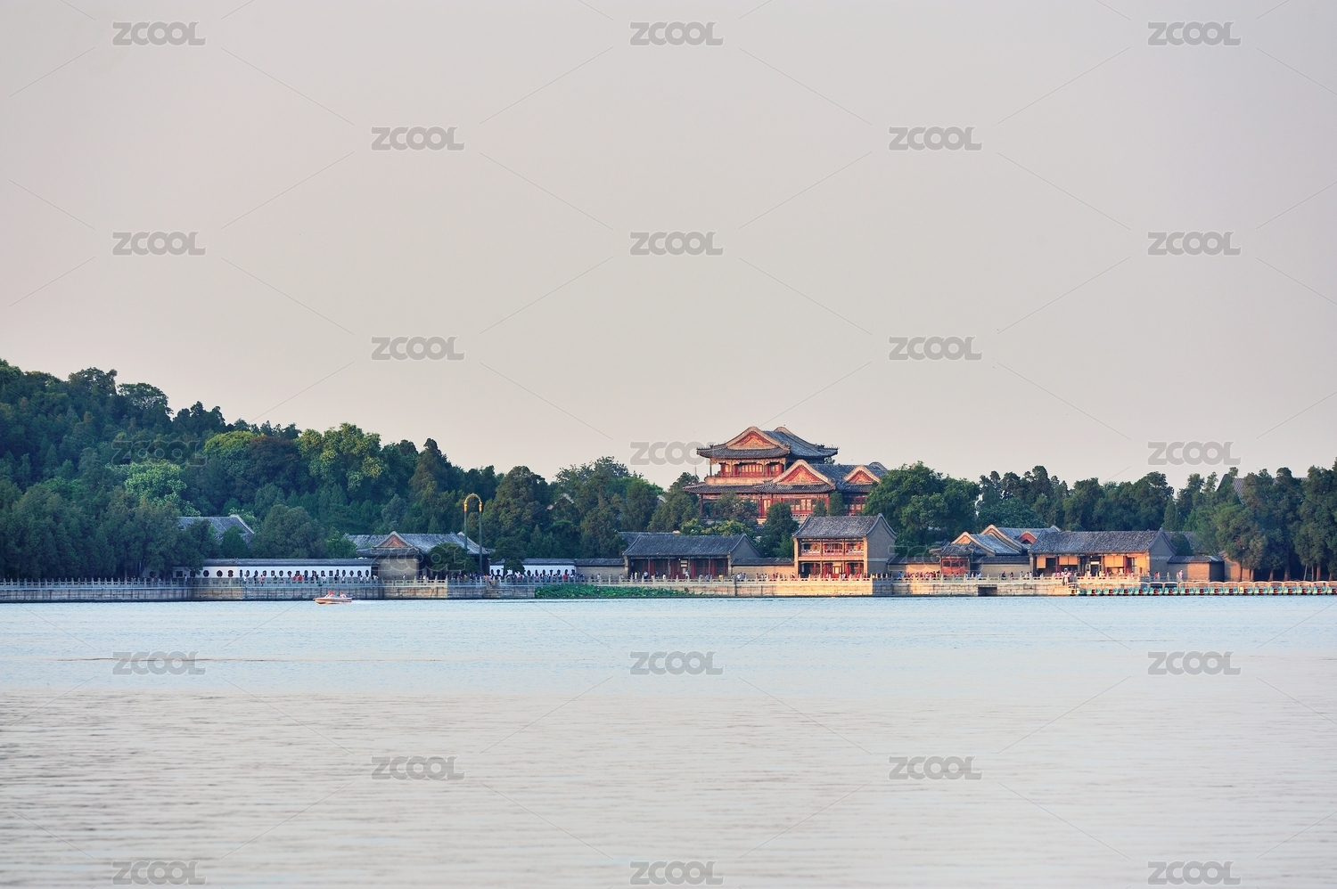 中国北京市颐和园排云殿古建筑和昆明湖风光