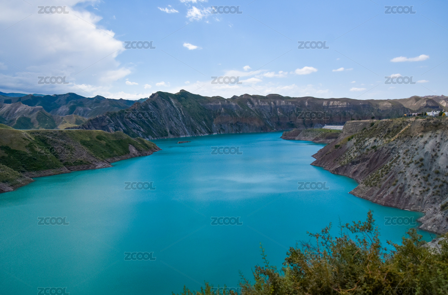 中国甘肃省天祝县石门水库蓝天白云绿水青山