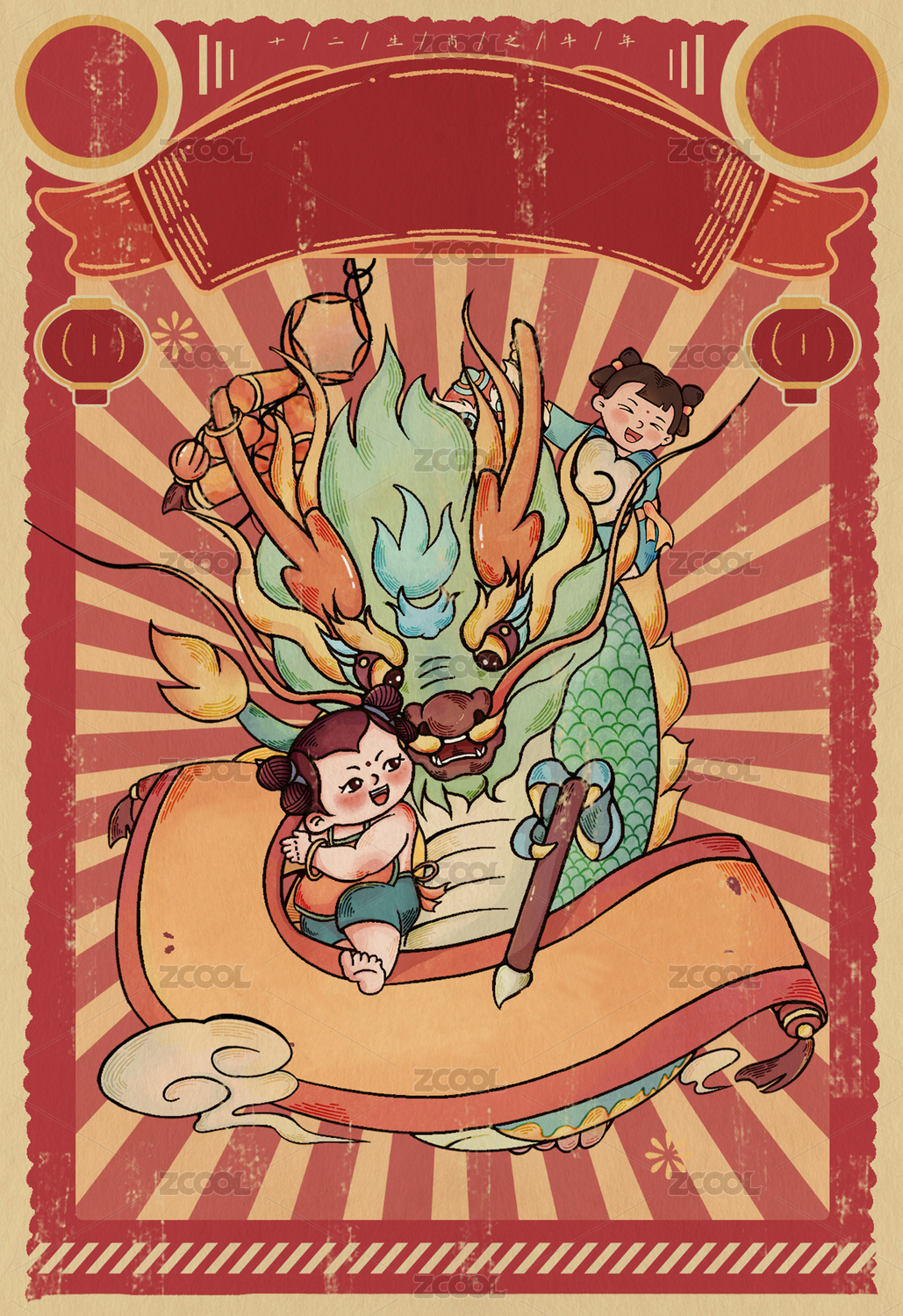 新春,红包,复古,喜庆,灯笼,竖版,设计,节日,元旦,海报