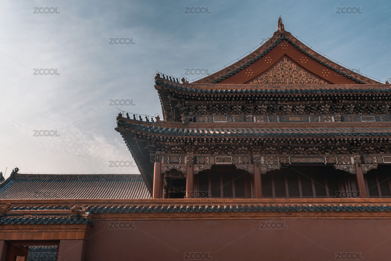 蓝天下的中国北京故宫博物馆的古宫殿建筑