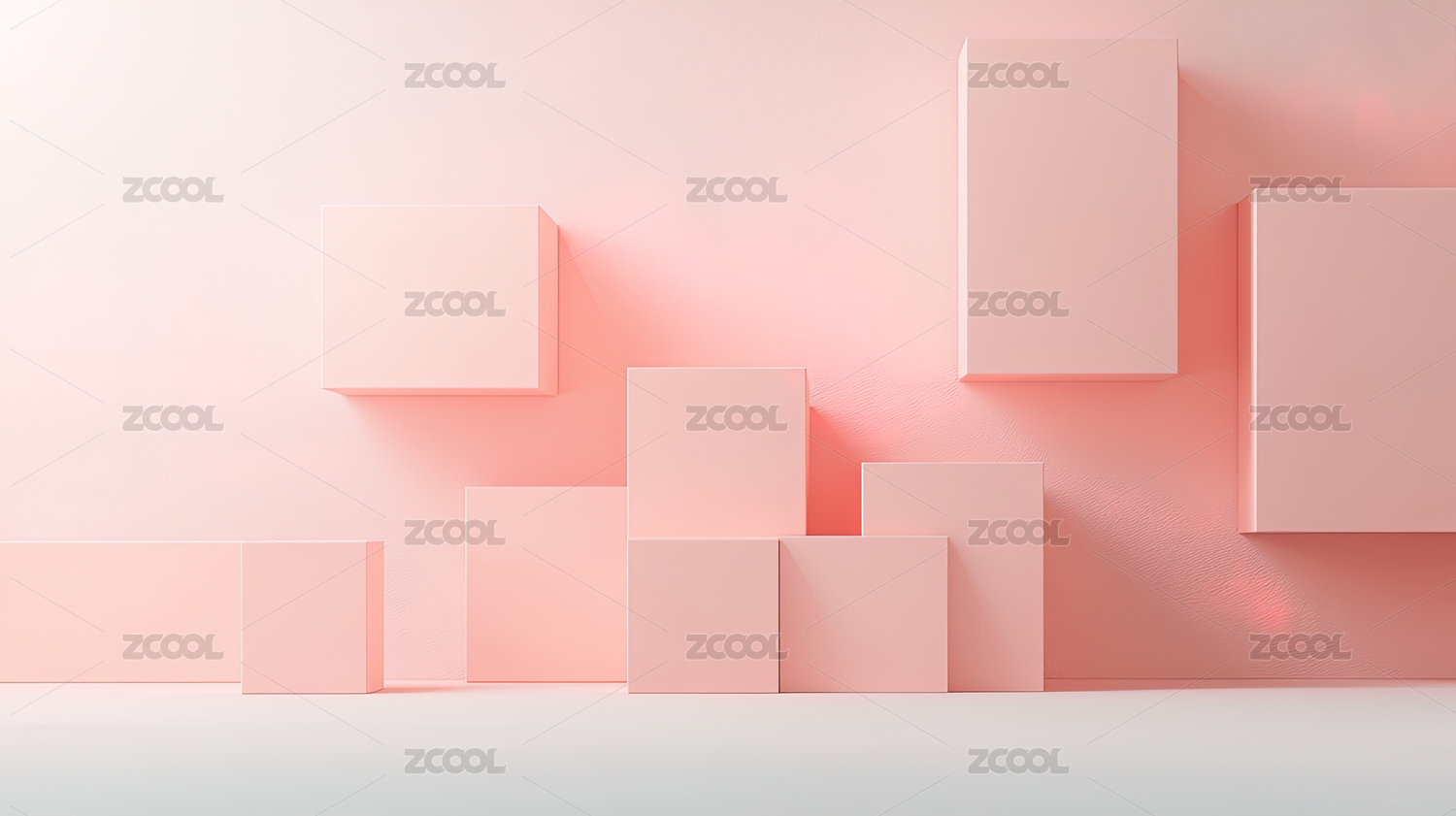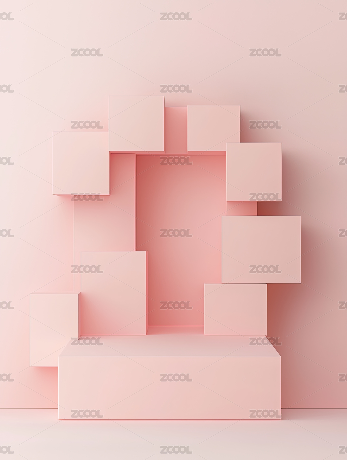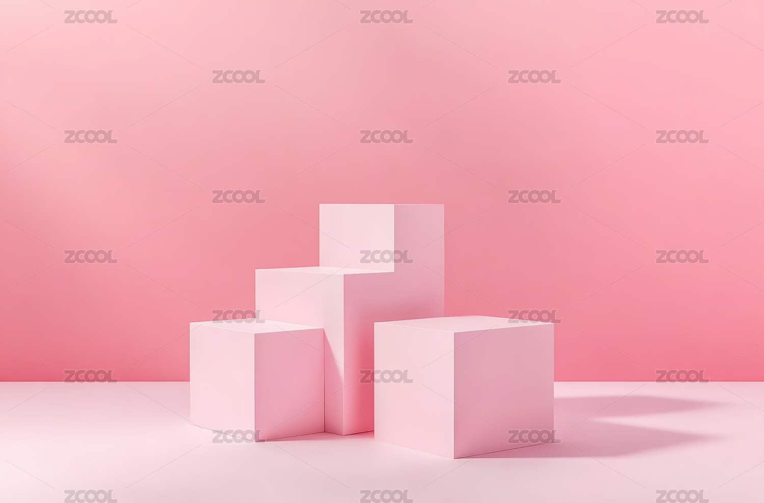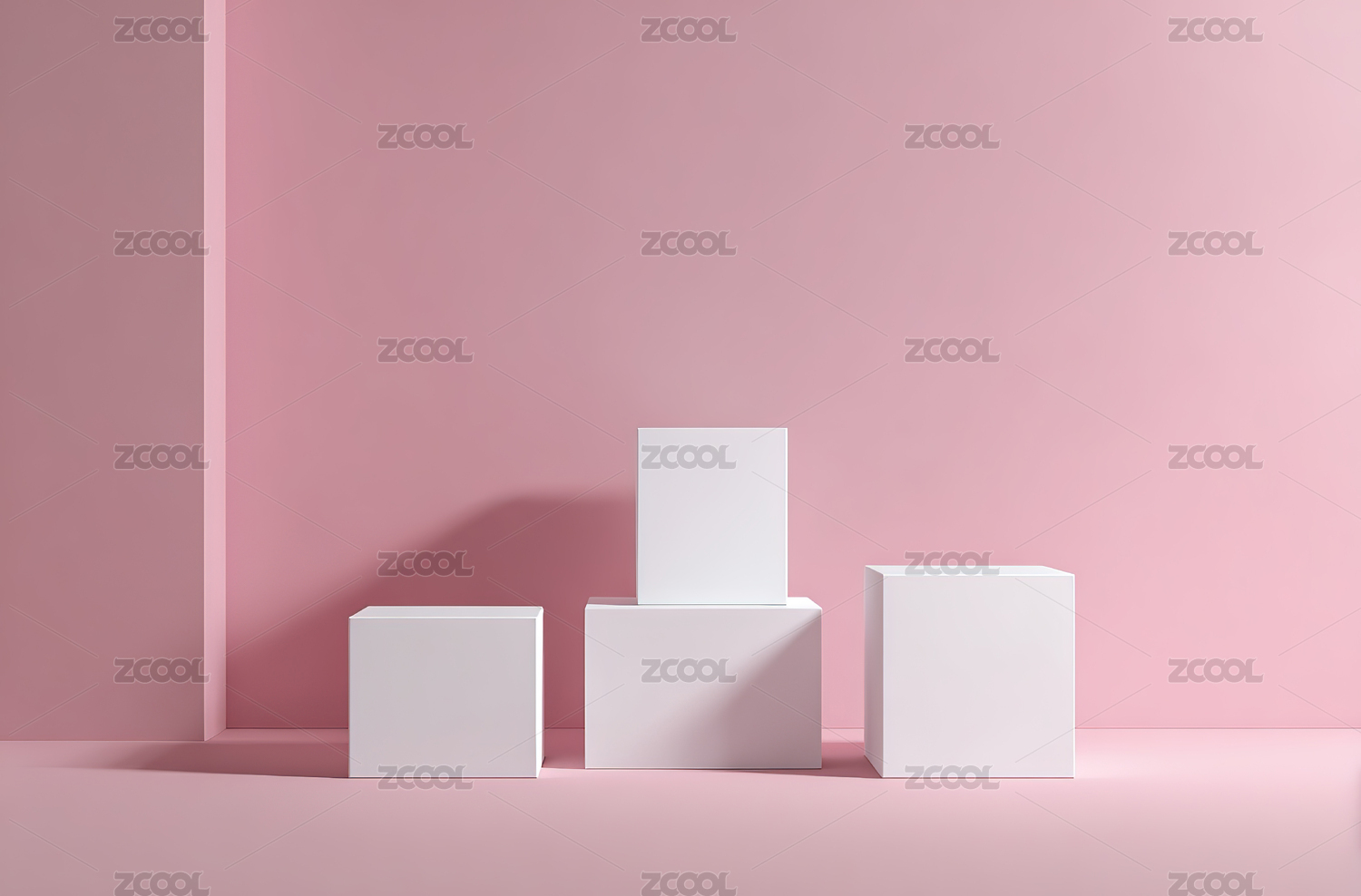 粉色的产品展示台放置在浅蓝色的背景上