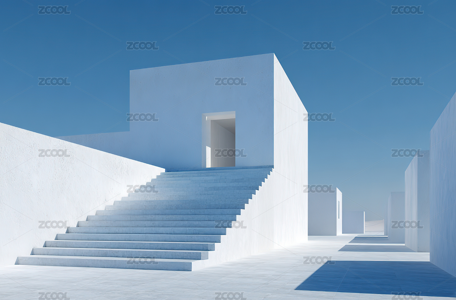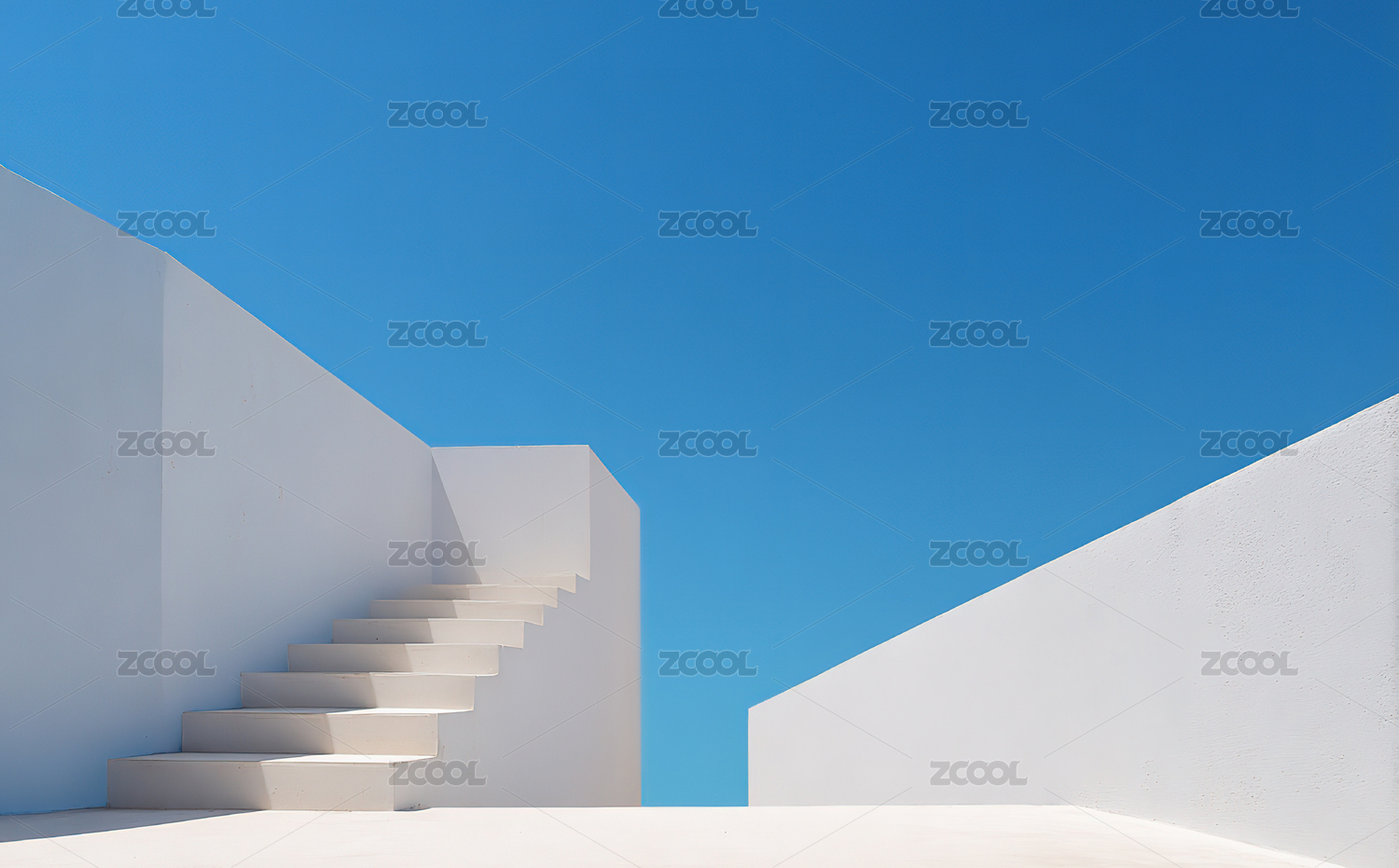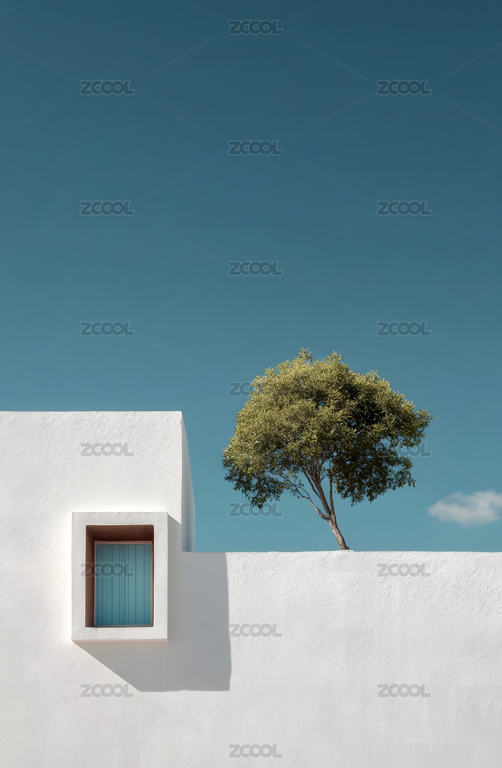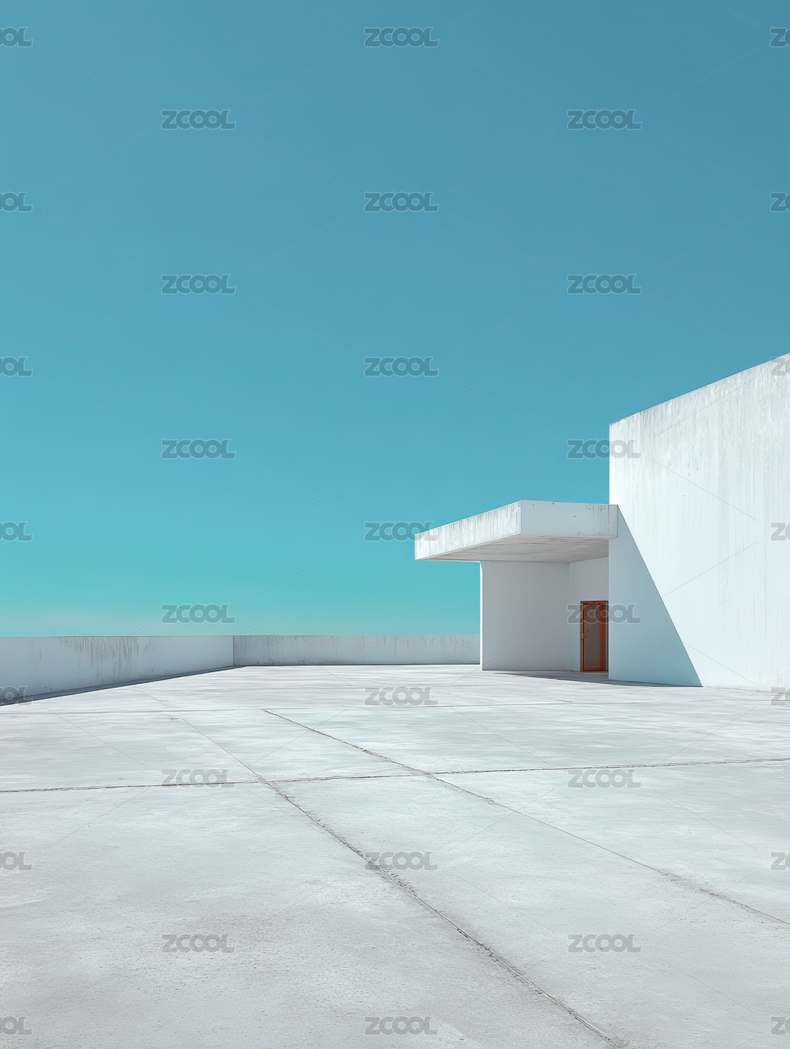 白天清新明亮现代单层别墅建筑局部插画绘画