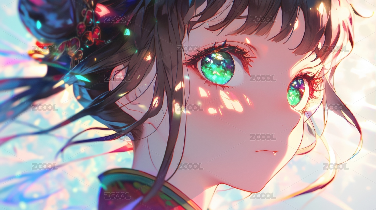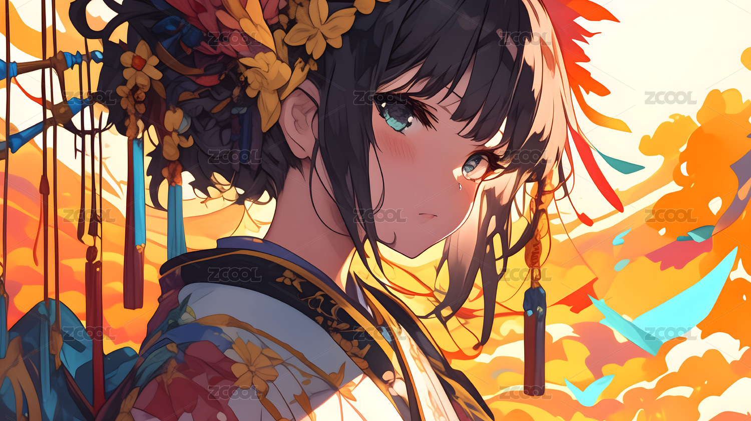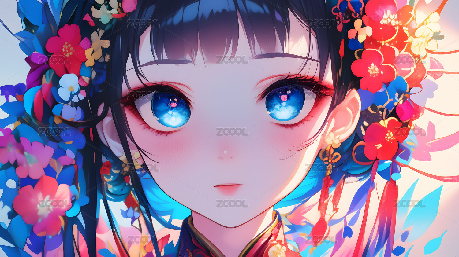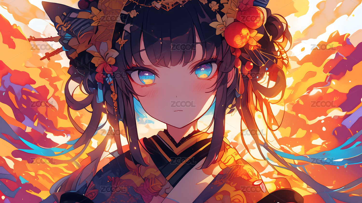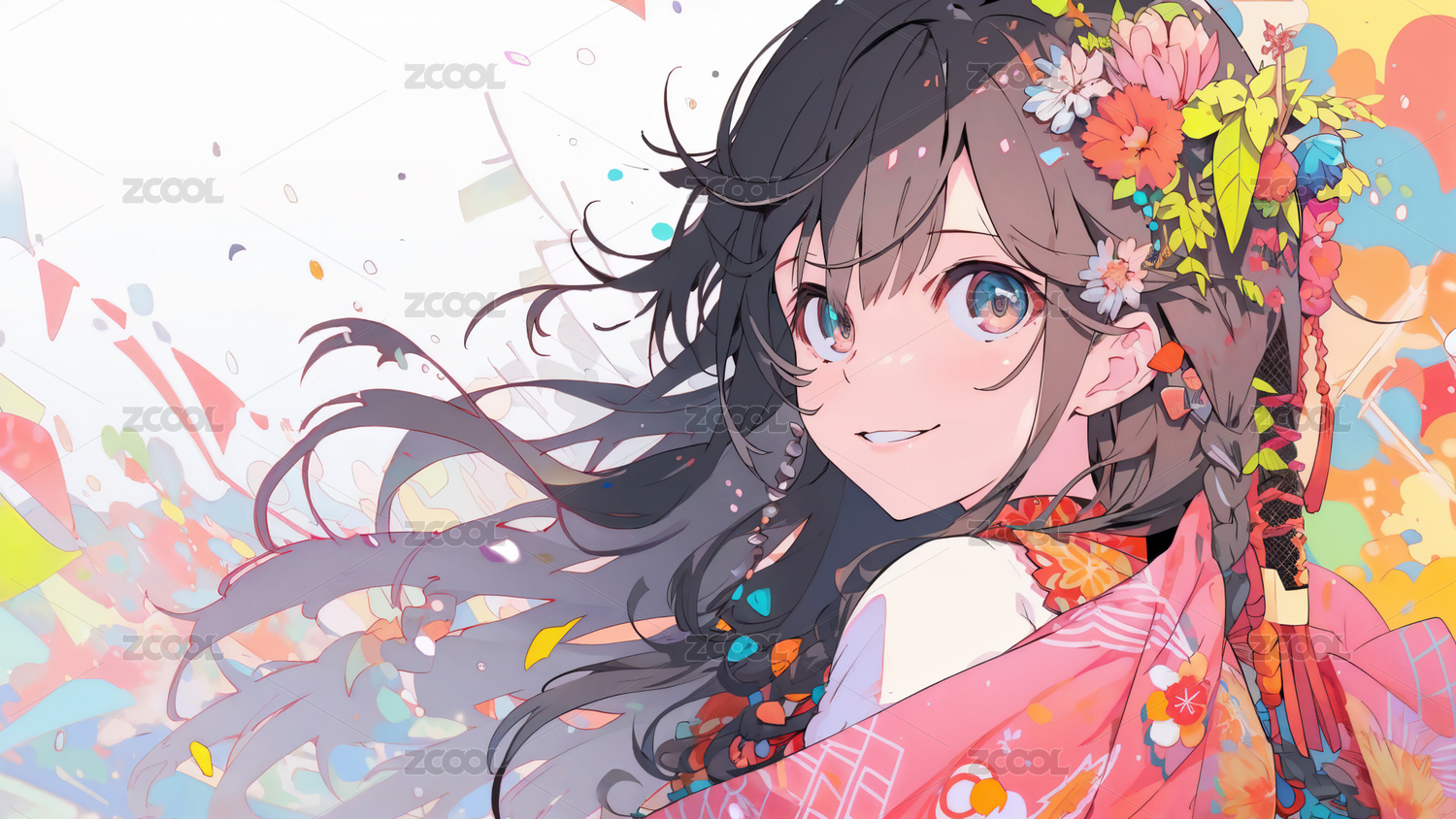 可爱的动漫女孩缤纷的色彩壁纸背景