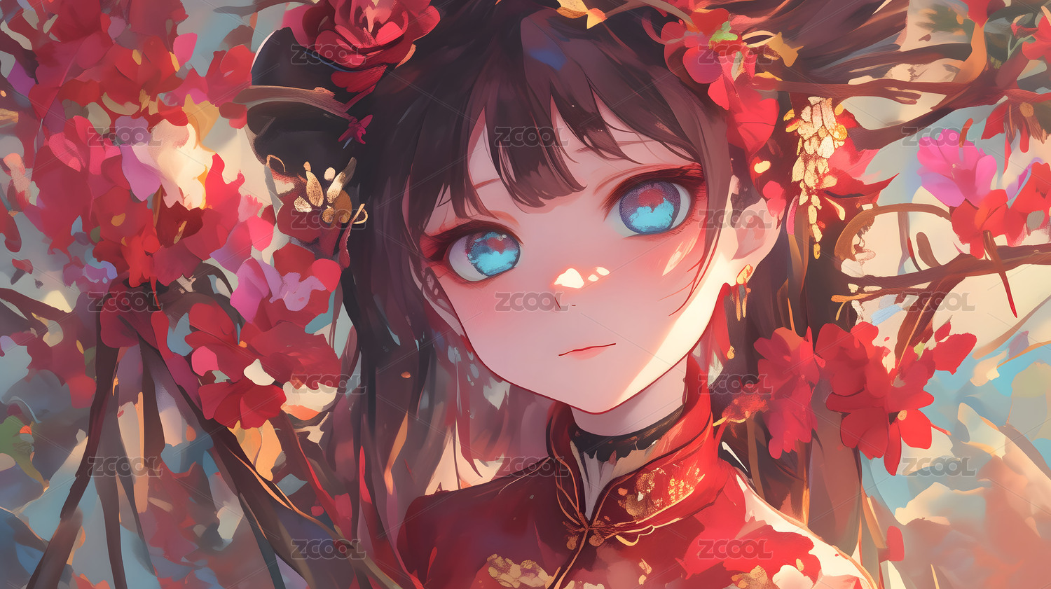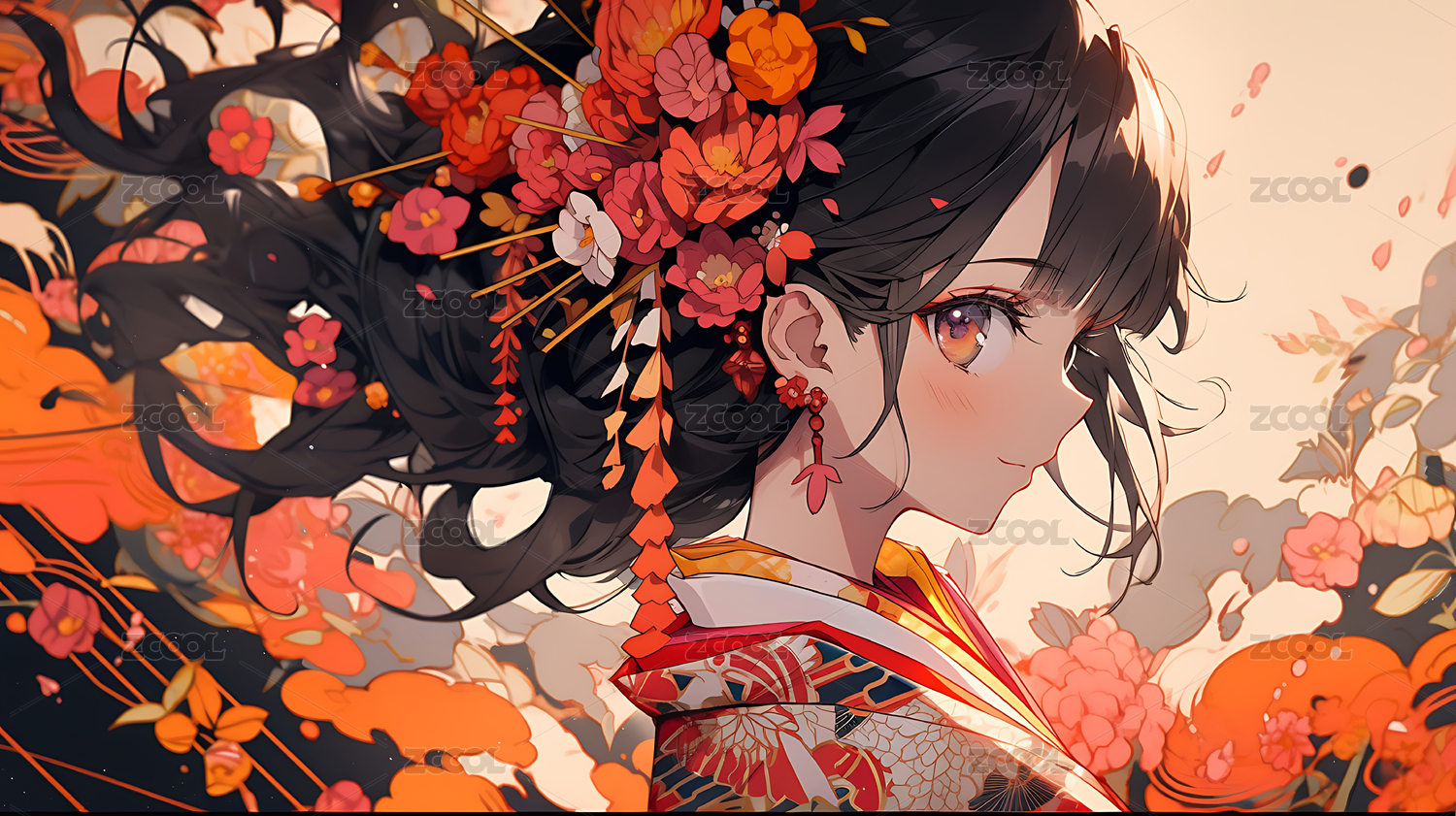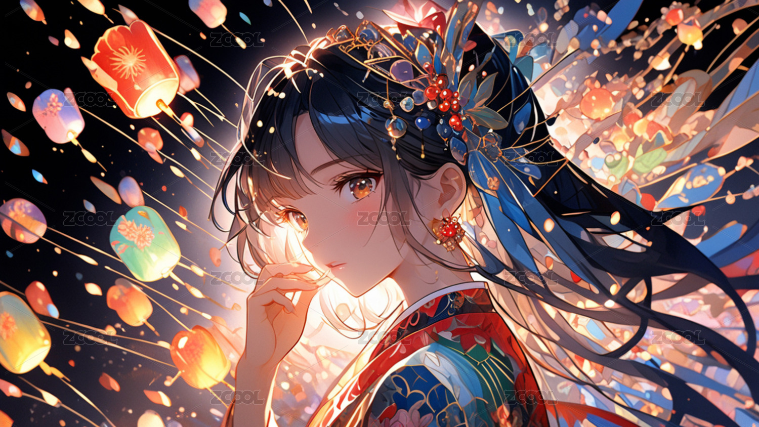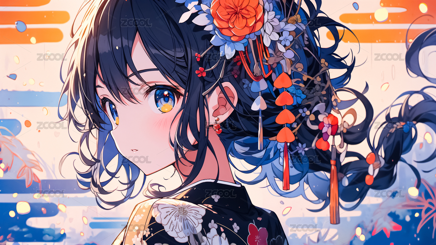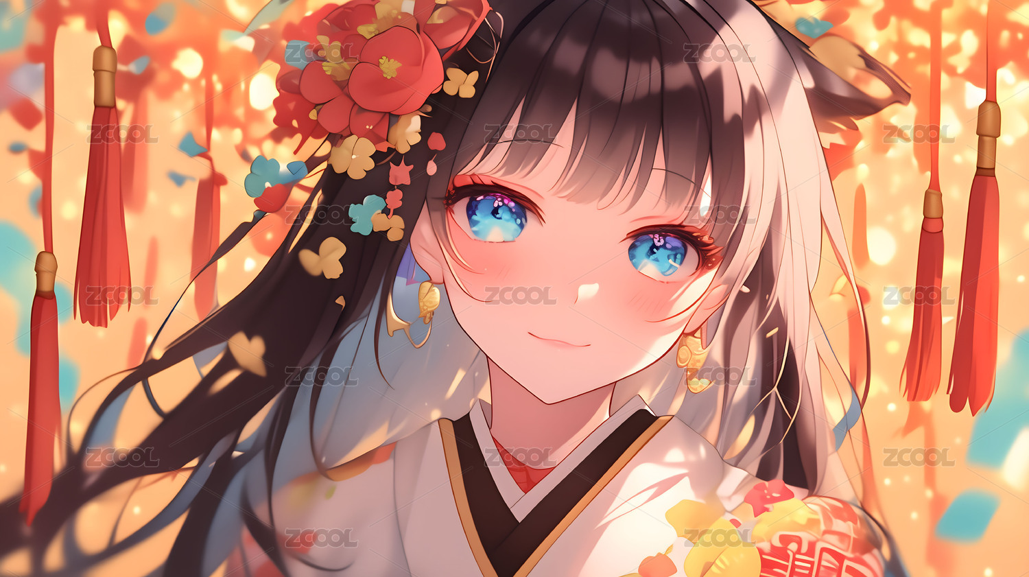 可爱的动漫女孩缤纷的色彩壁纸背景
