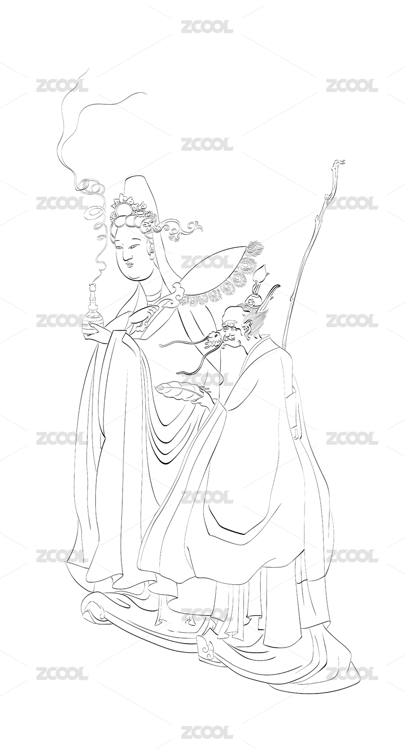 八仙,吕洞宾,吕岩,吕祖,线稿,插画,人物