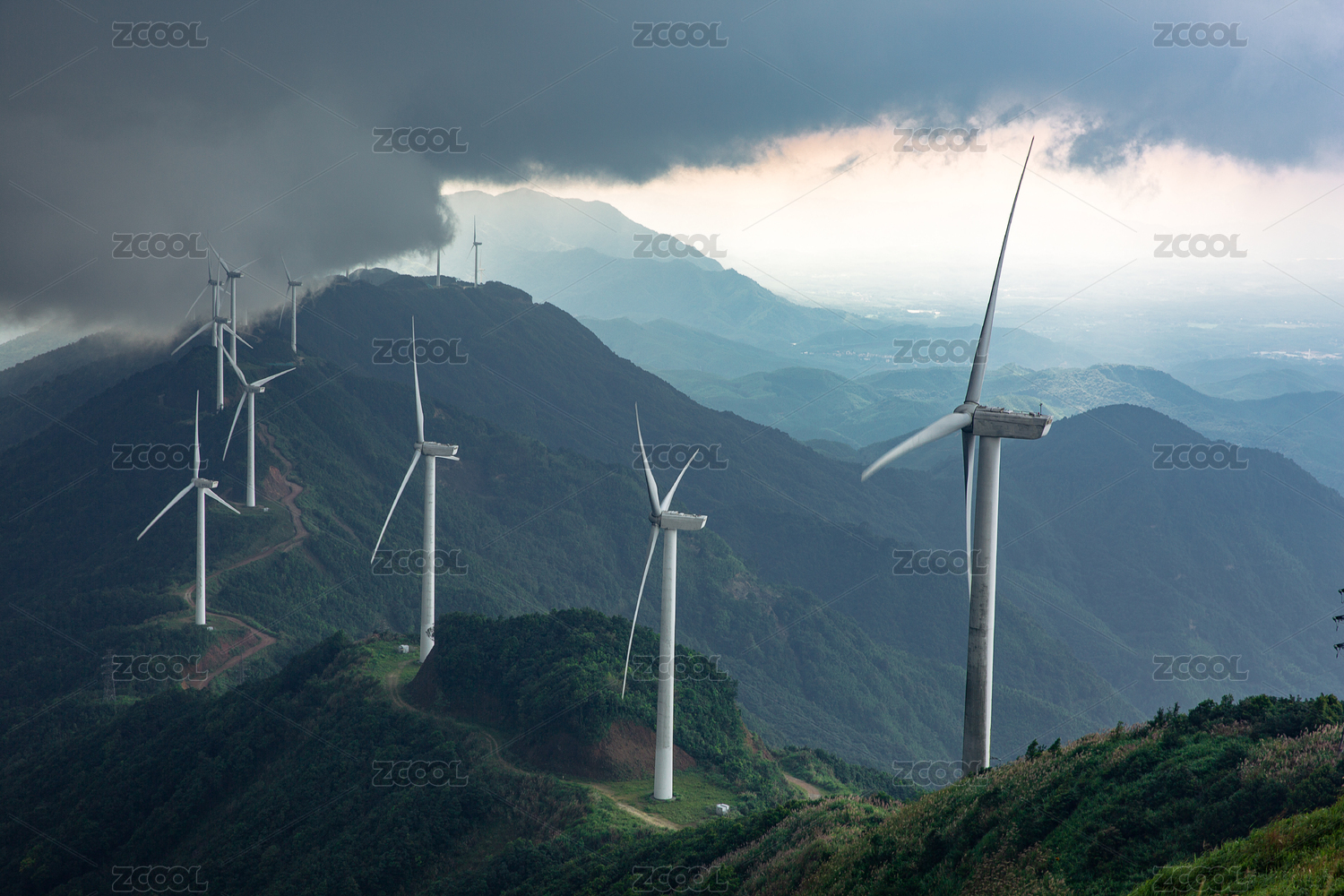 中国广东河源市缺牙山山顶风力发电机组