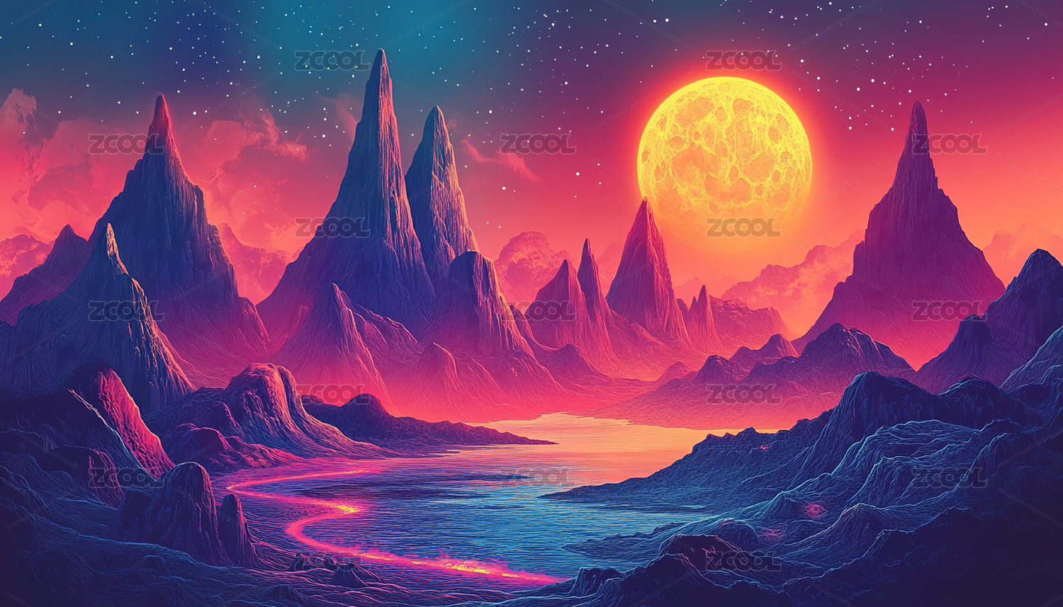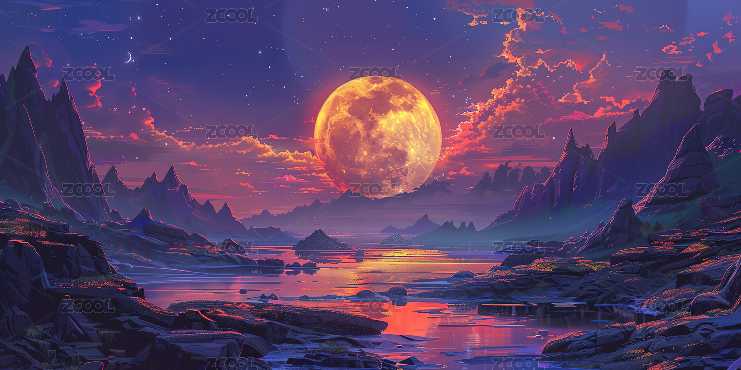 手绘唯美的抽象艺术感夜晚天空风景插画