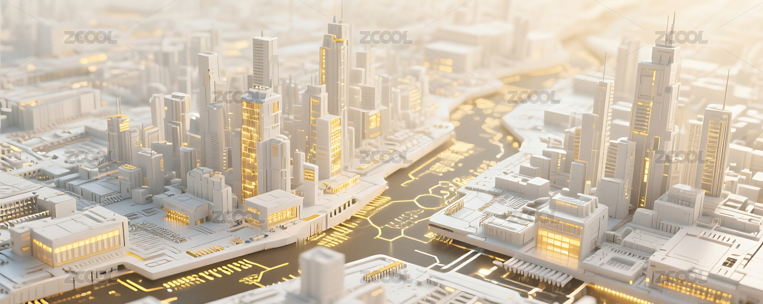 数码科技蓝白色智慧城市智能建筑插画海报背