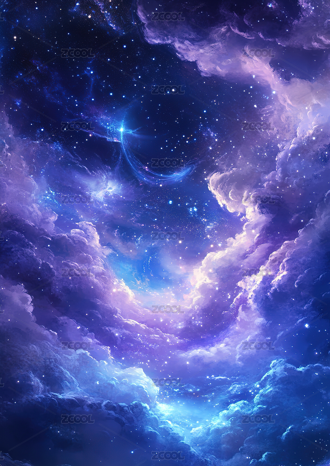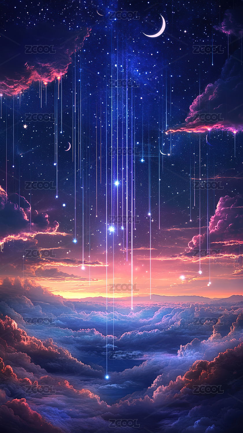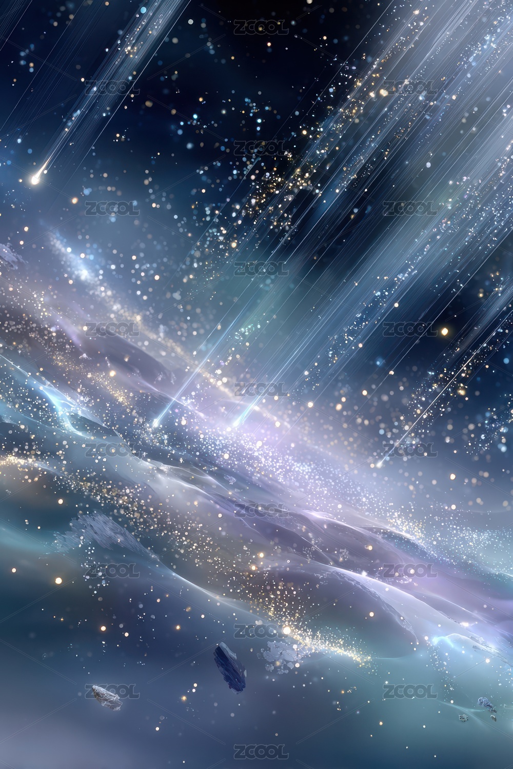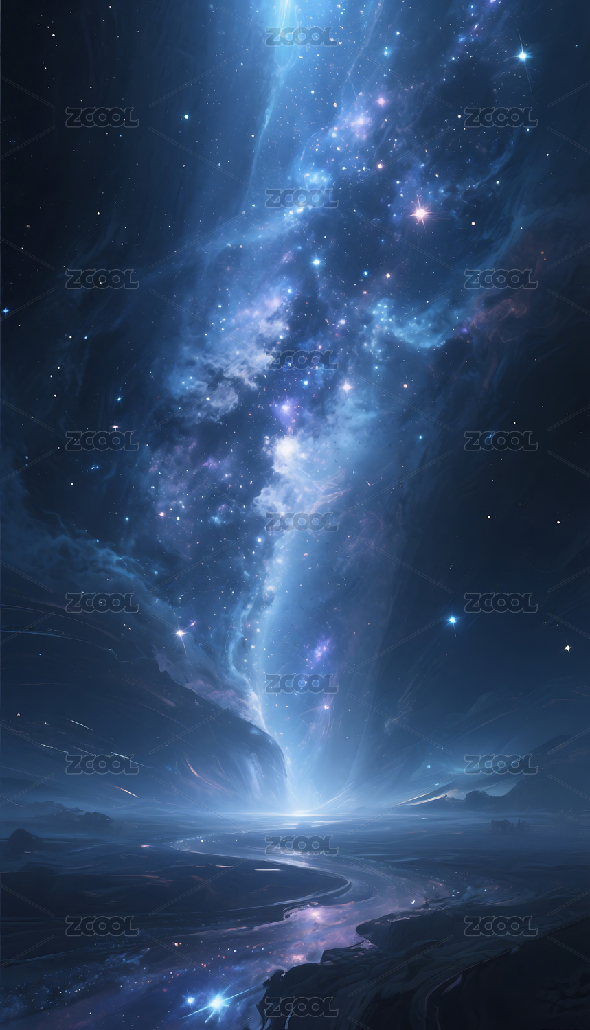 瀑布星空星云星河银河星光奇幻梦幻超现实大