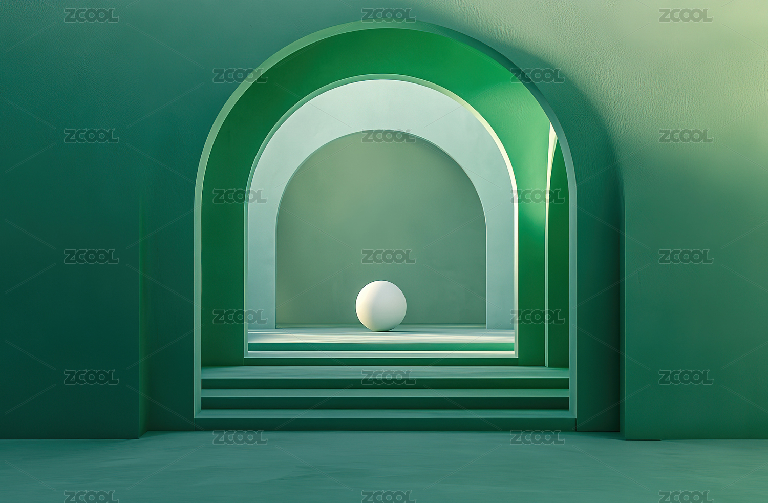绿色拱门内的发光球体