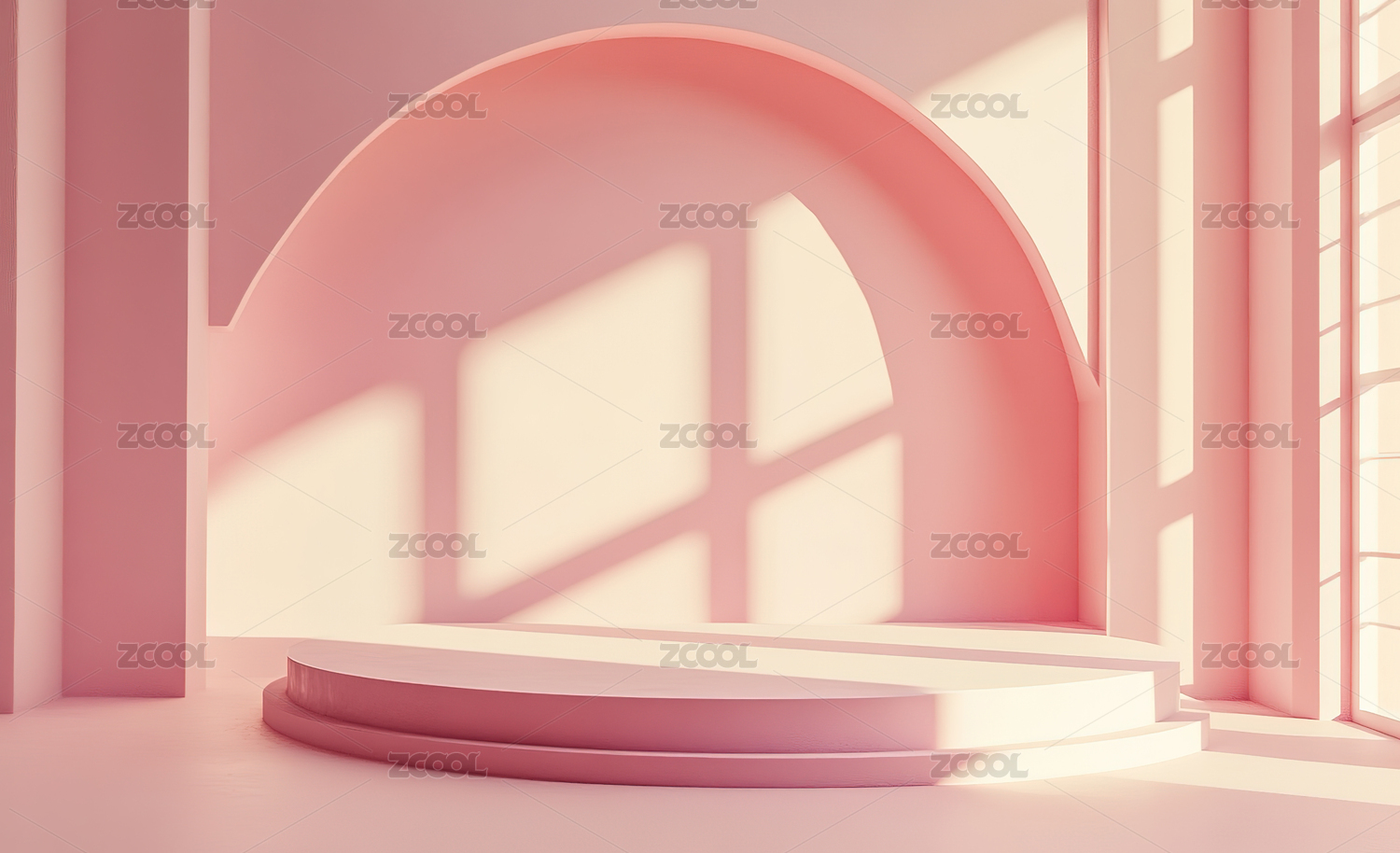 3D粉色光影圆形电商产品展台