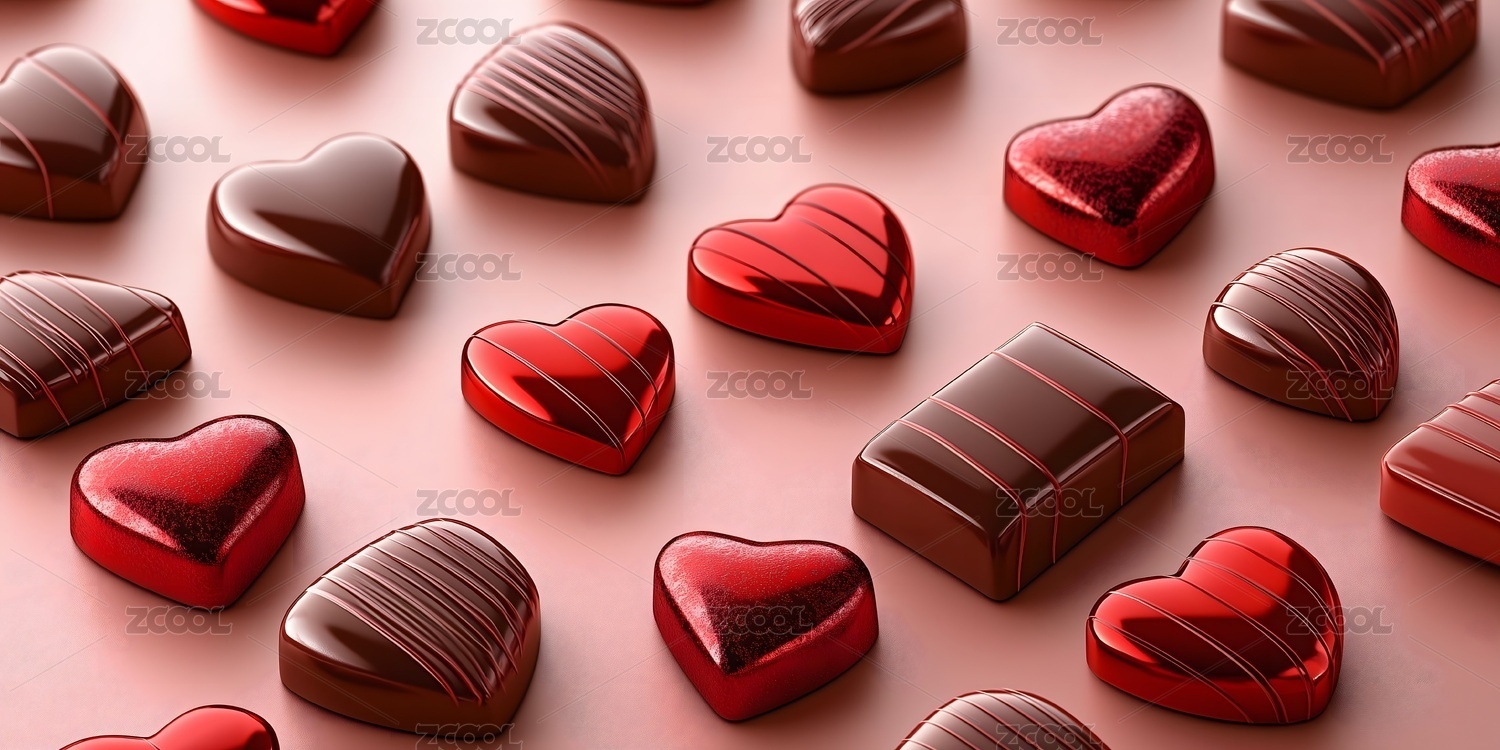 心形巧克力与玫瑰花瓣的甜蜜爱意