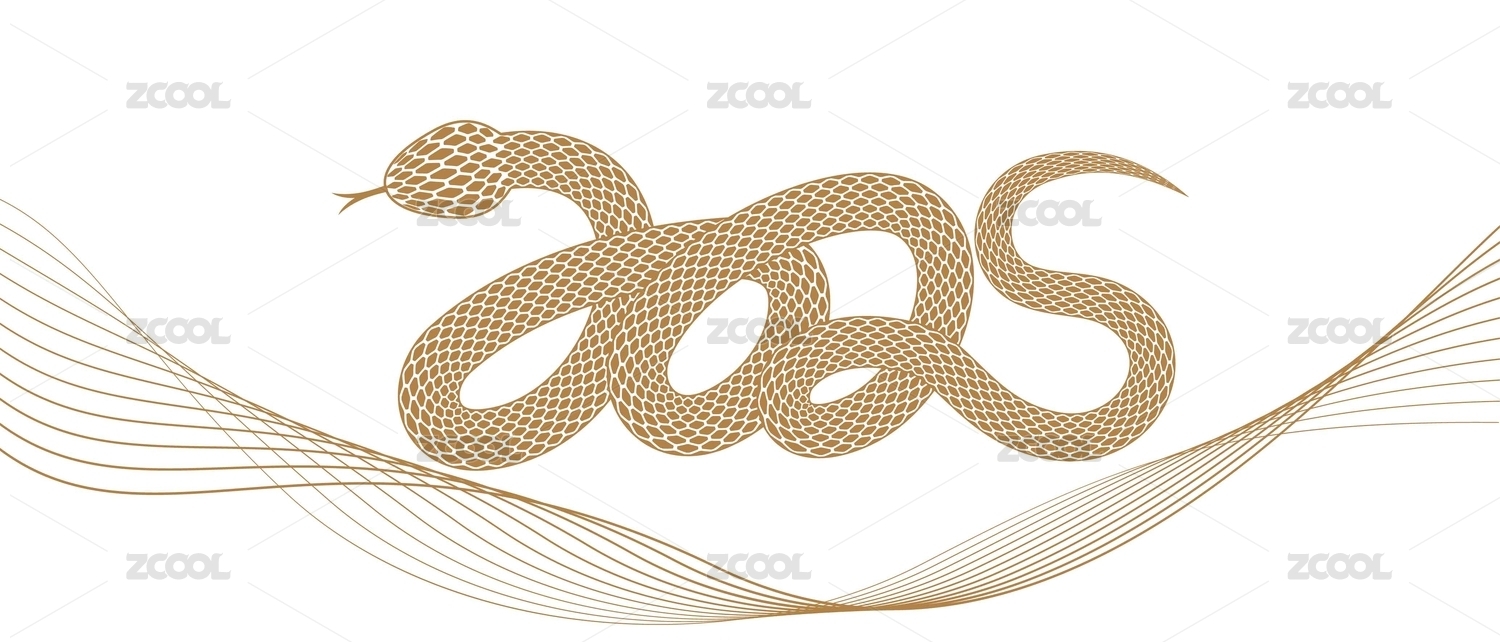 蛇形状的蛇年金色数字2025