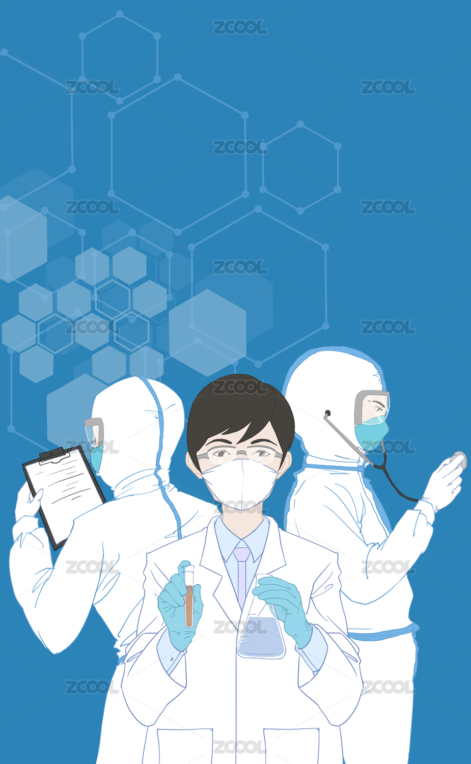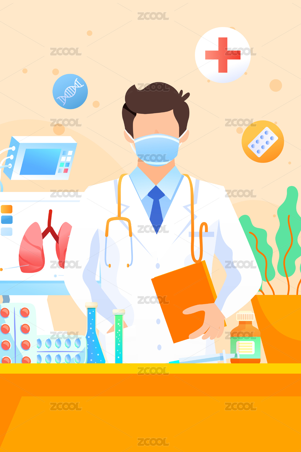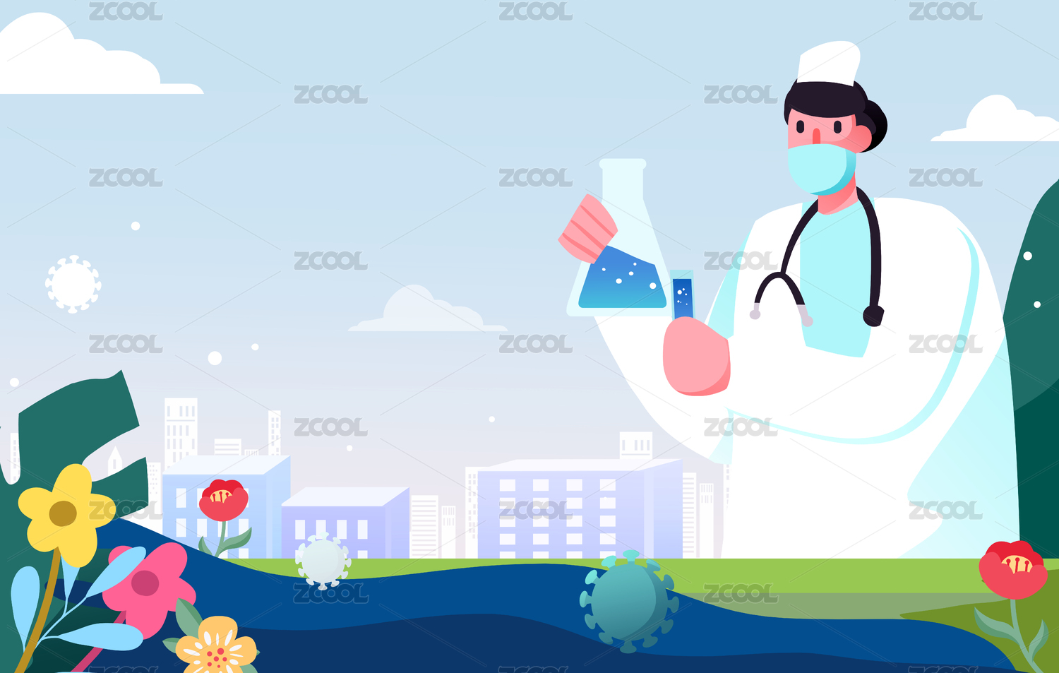 卡通手绘戴口罩医护人员手持化学瓶子插画