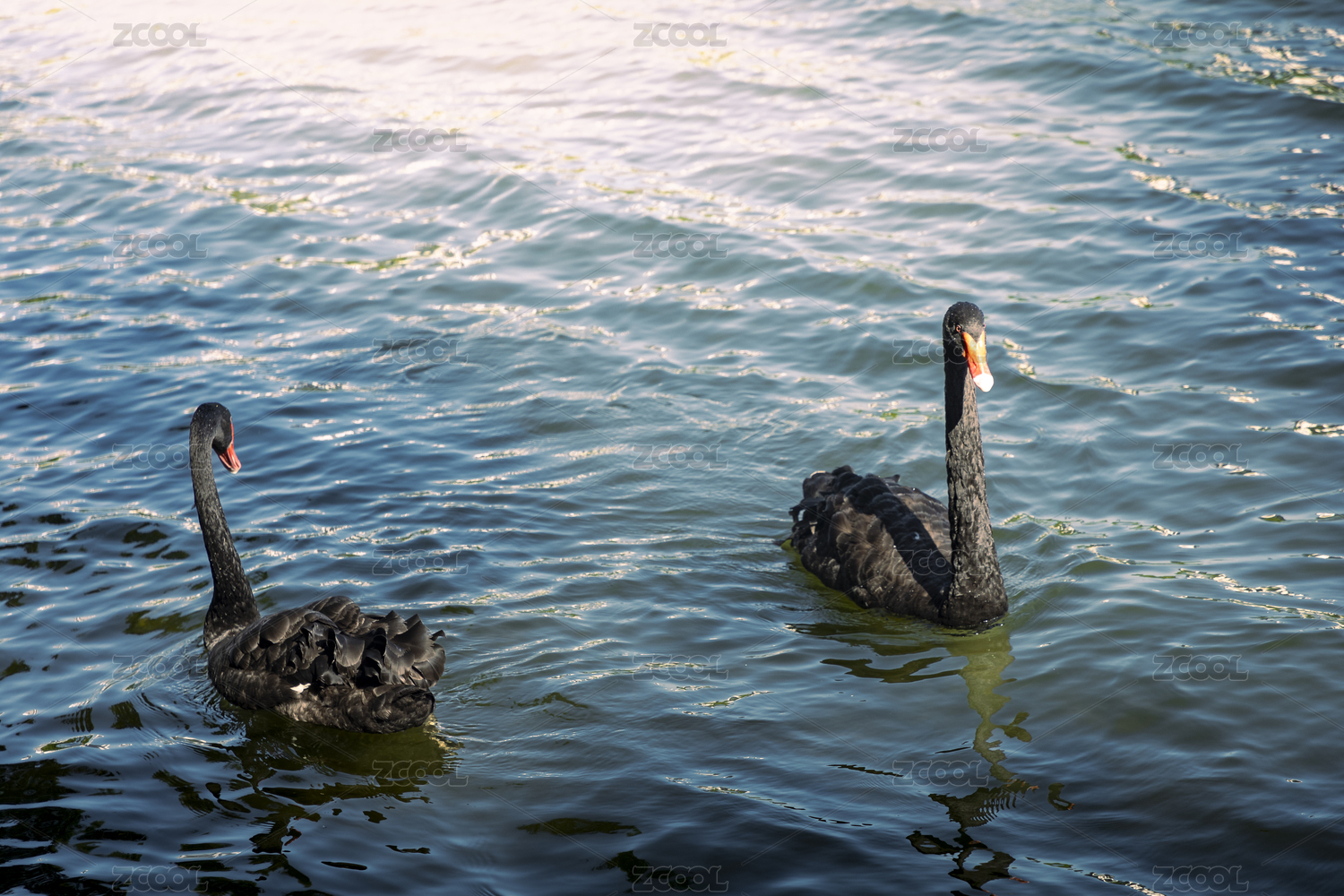 中国长春友谊公园湖面的黑天鹅游泳景观