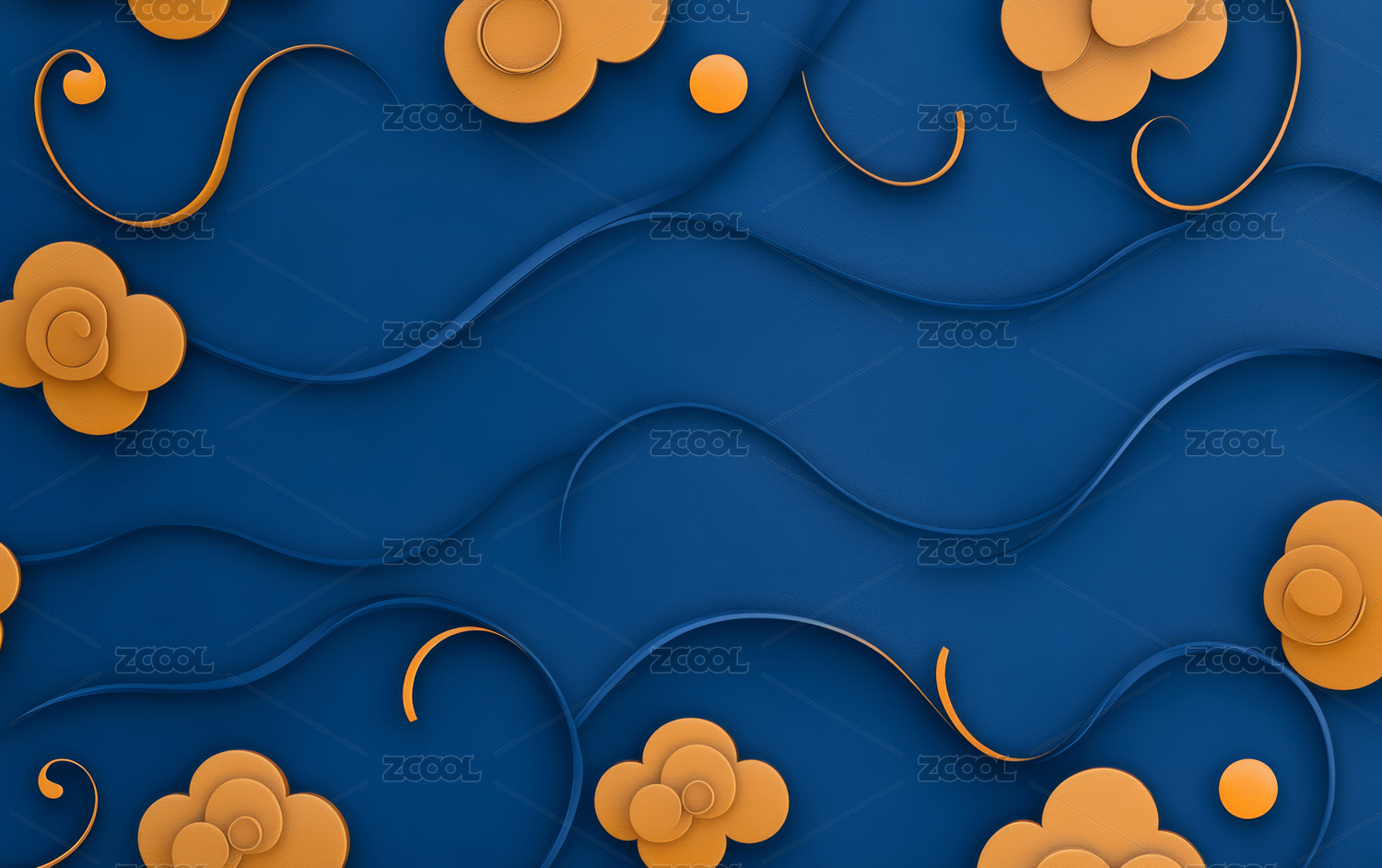 金色祥云深蓝背景