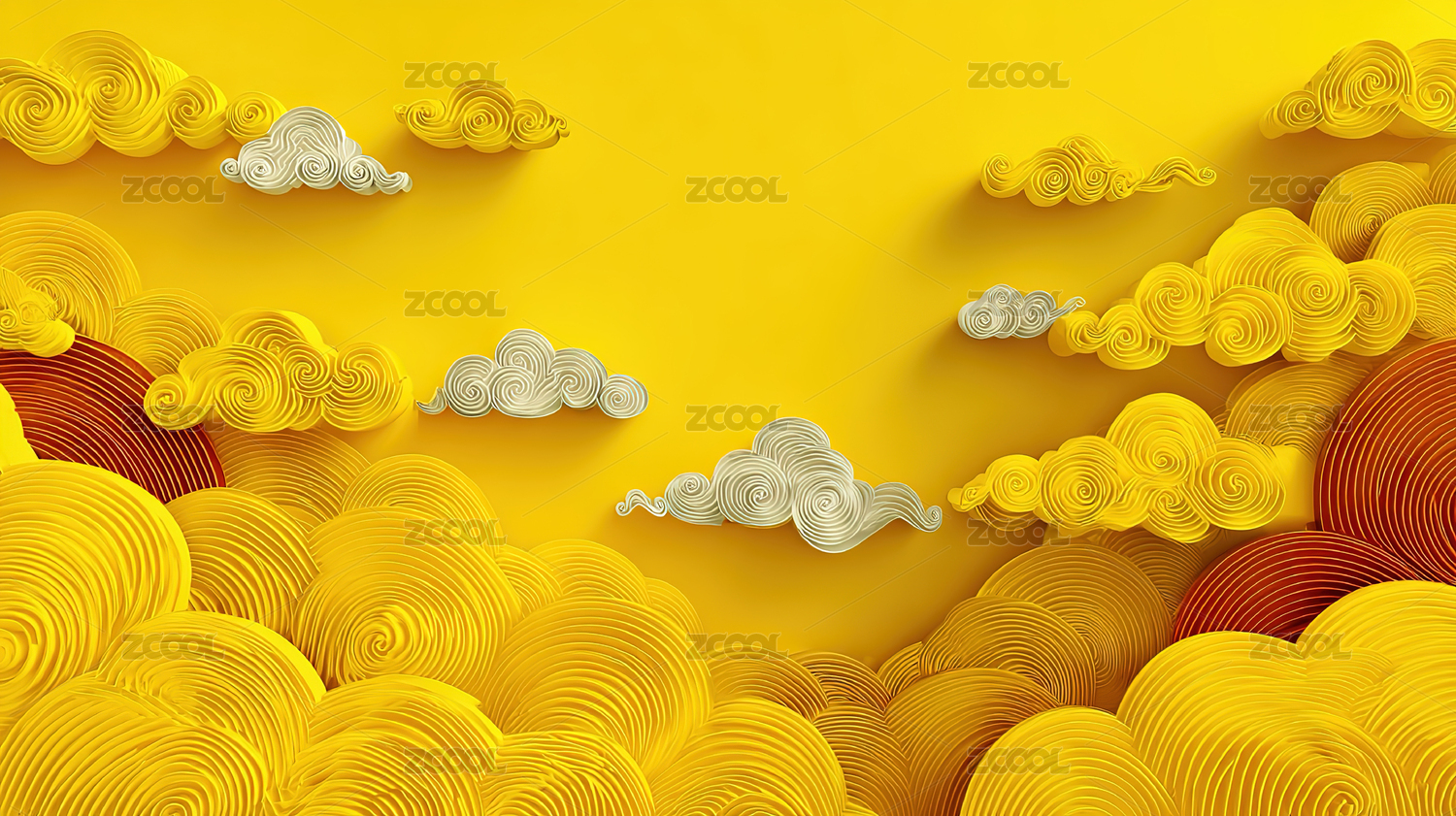 黄色背景上的立体云朵艺术设计