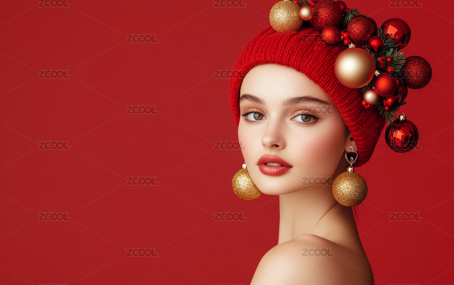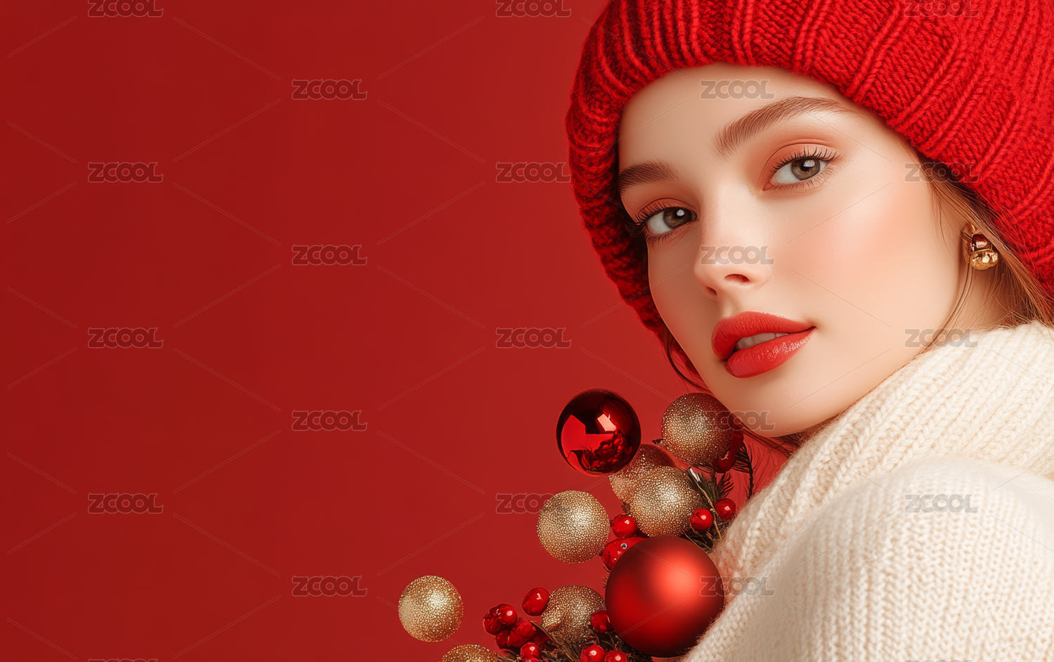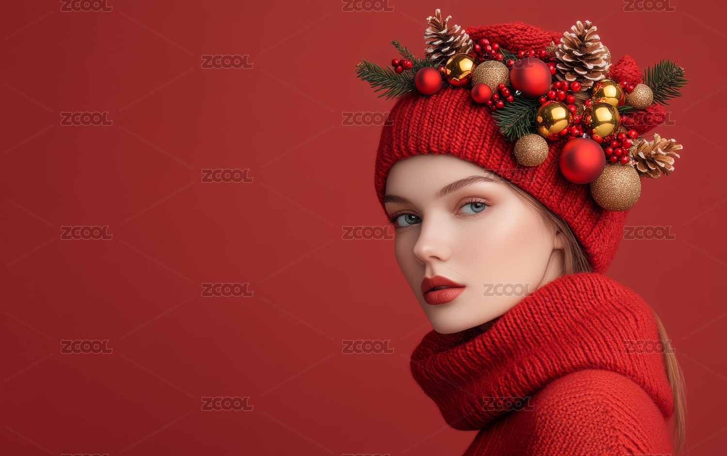 红色圣诞主题的欧美时尚人像写真