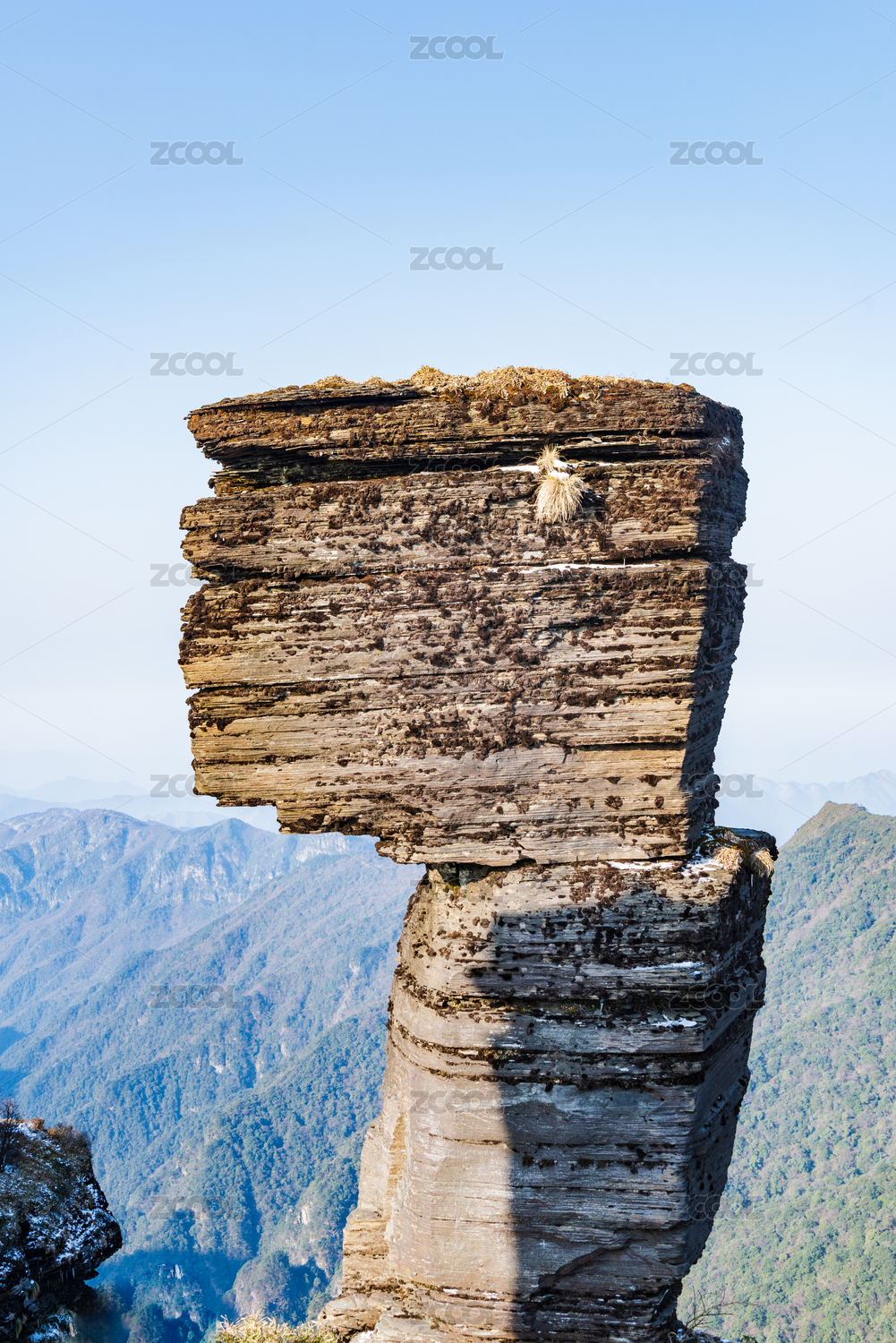 贵州铜仁梵净山冬季晴天下的蘑菇石