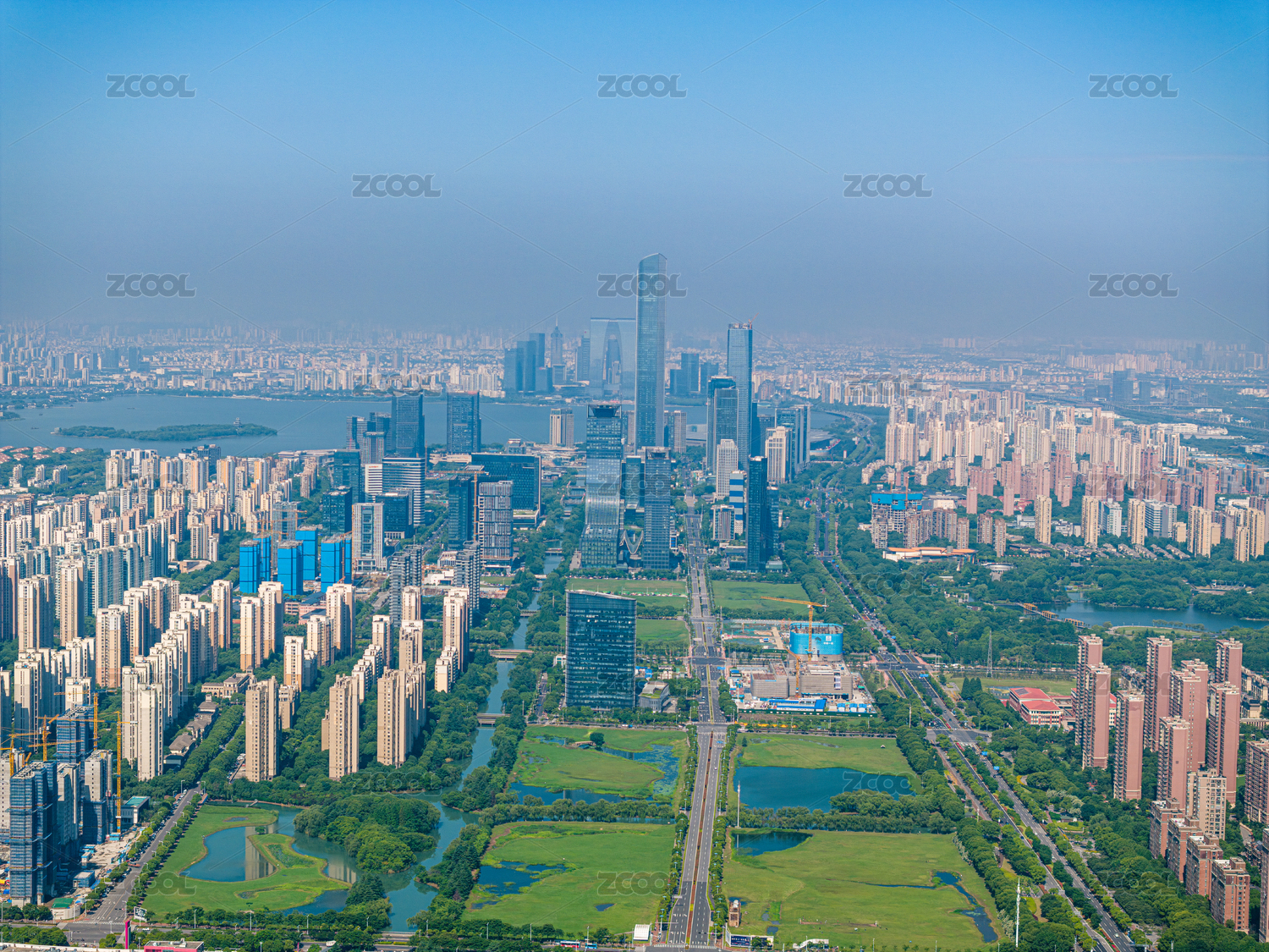 河南郑州高铁东站绿地中心夏季航拍城市风光