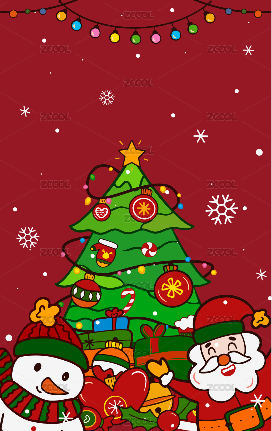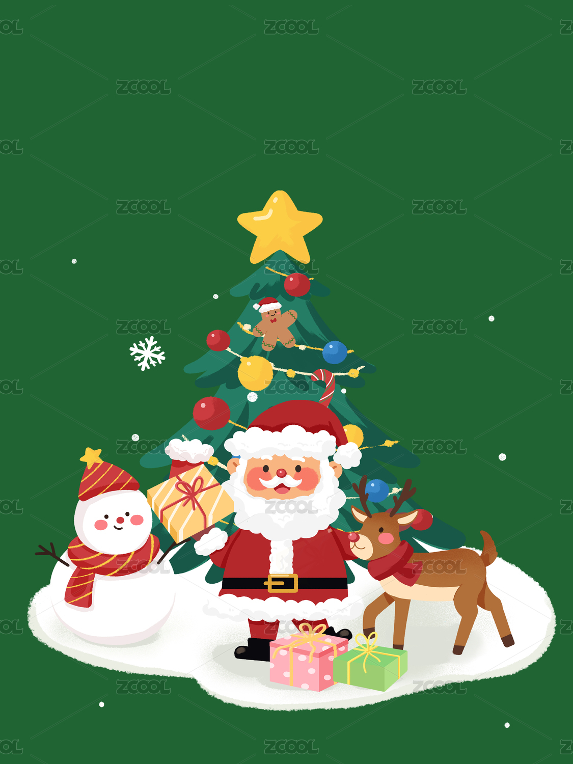 圣诞节快乐海报圣诞老人圣诞树雪人麋鹿