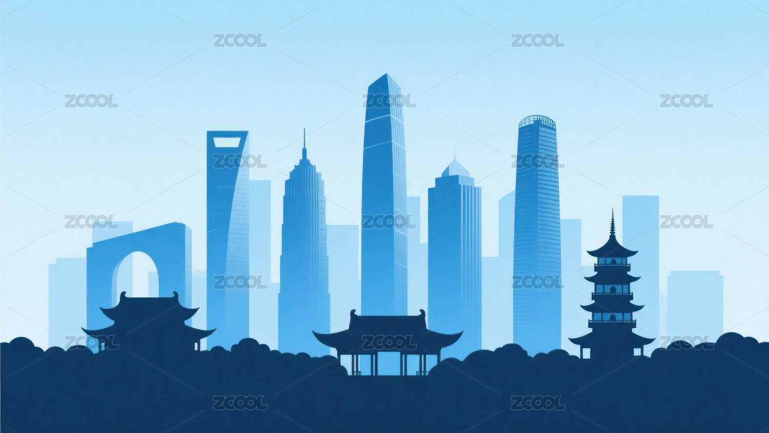 城市地标建筑插画背景图